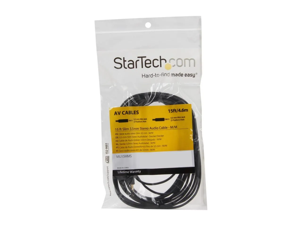 Designed and constructed for maximum durability, this 15-foot 3.5mm Slim Stereo Audio Cable is backed by StarTech.com's Lifetime Warranty.
