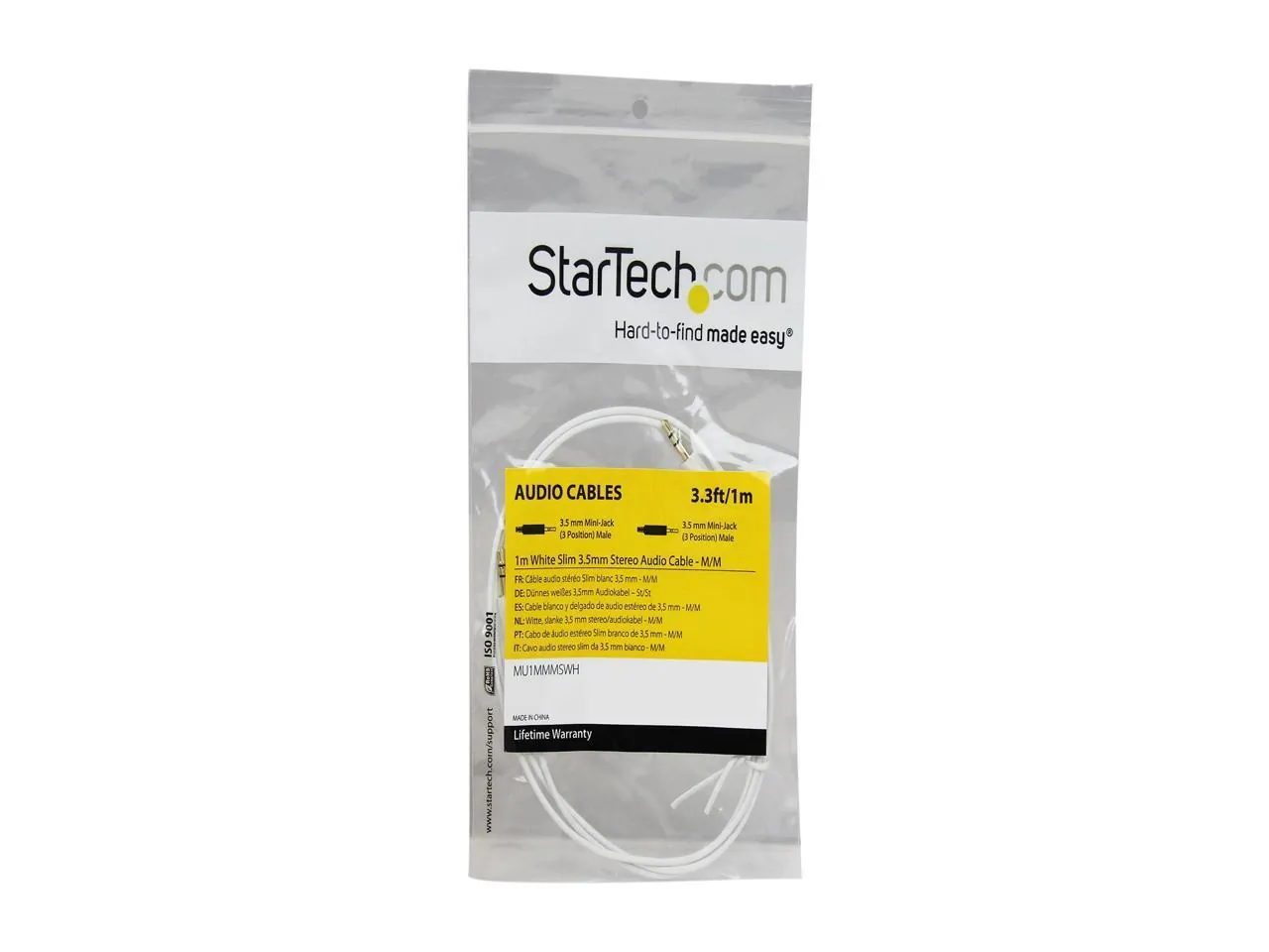 StarTech.com MU1MMMSWH 3.3 ft [1 m] 3.5mm Stereo Audio Cable - Male to Male