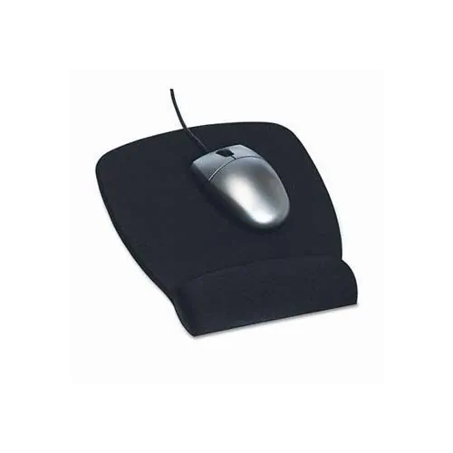 Mouse pad features a foam-filled wrist rest with nonskid base that encourages neutral wrist posture. Antimicrobial additive inhibits the growth of microorganisms, such as bacteria that cause stains, odors and product degradation. Fabric covering is soft to the touch.