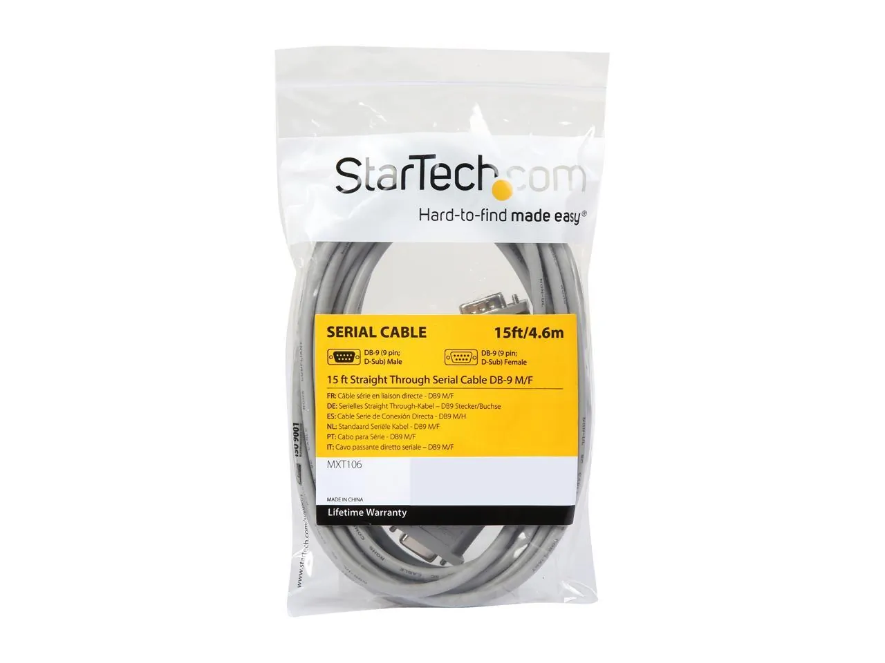 StarTech Model MXT106 15 ft. Straight Through Serial Cable - DB9 M/F Male to Female