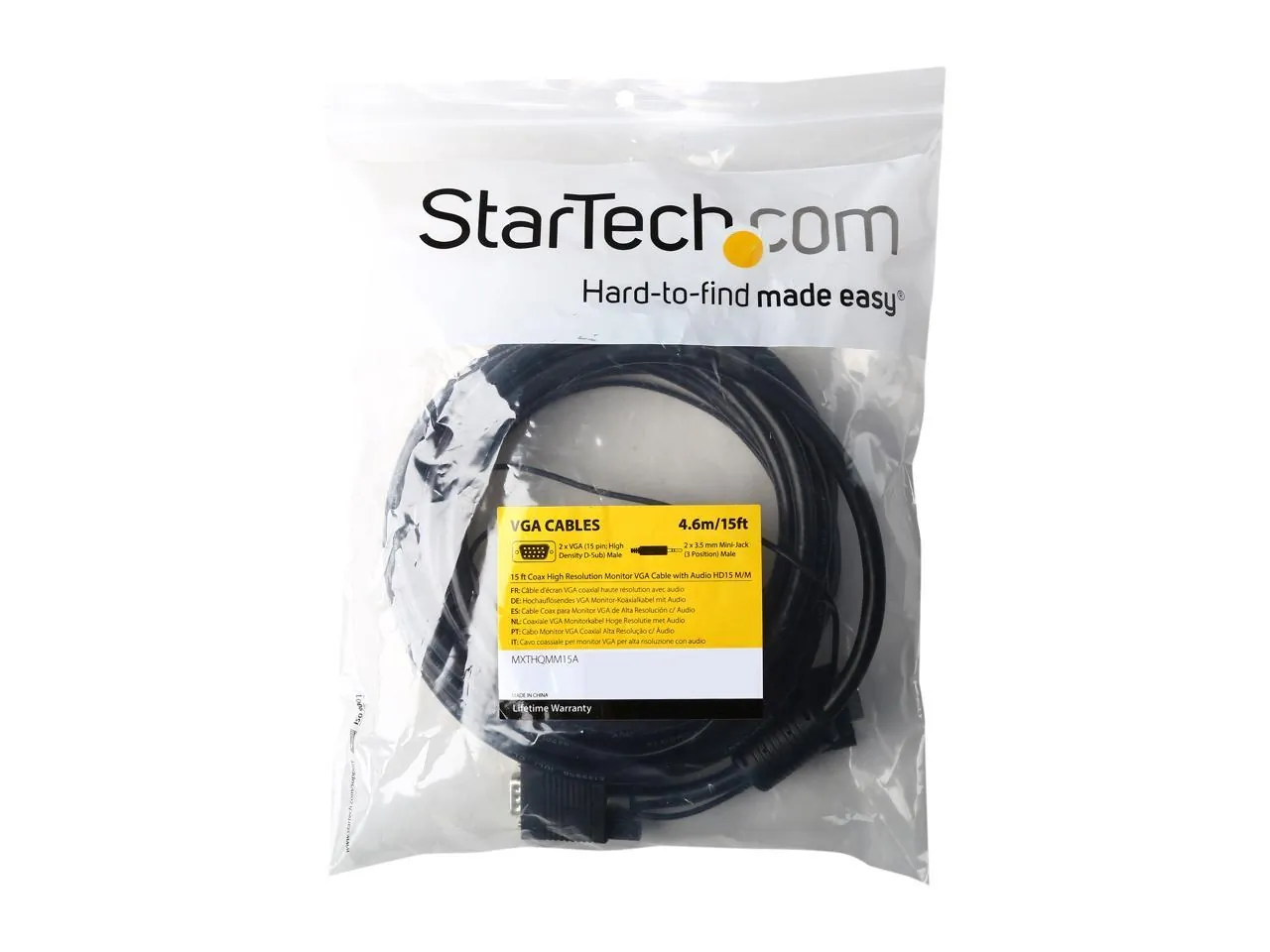 Make VGA video and audio connections using a single high quality cable 15ft vga cable 15ft vga video cable 15ft vga monitor cable 15ft hd15 to hd15 cable