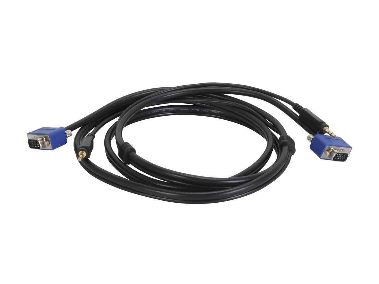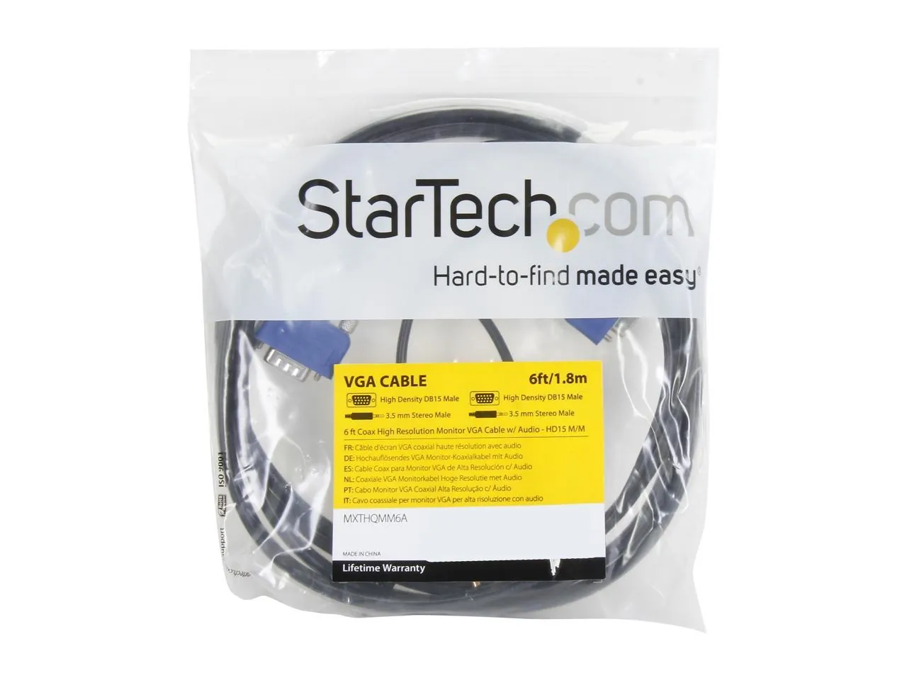 This 6ft Monitor VGA Cable combines a 3.5mm audio cable with a high quality SVGA video cable, providing a single solution for connecting both video and audio connections between a sound card and external audio device and a VGA video card and monitor. The SVGA cable (with audio) is backed by Lifetime Warranty.