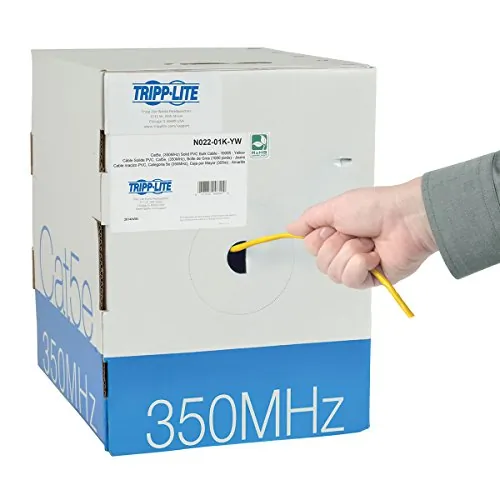 Tripp Lite N022-01K-YW Cat5e 350 MHz Bulk Solid-Core PVC Cable, Yellow,1000'., TAA:Ideal for all non-plenum horizontal wiring applicationsRated for 350 MHz/1 Gbps communicationsHigh-quality 24 AWG 4-pair solid copper wire