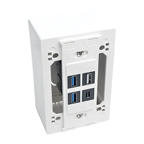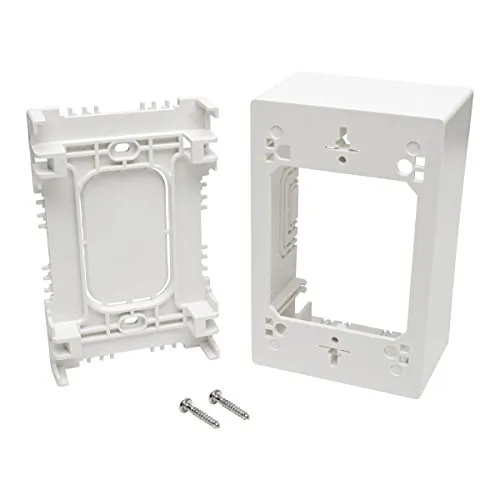 • Accepts mid-sized & standard wall plates;• Raceway cutouts in 3 sizes: 1", 1.25" & 1.75" dia;• 2" deep;• Durable ABS thermoplastic construction;• Completes multiple A/V, voice & Ethernet in-wall applications;• Rear rectangular knockout;• Cover snaps to base with no screws required;• TAA compliant;• Includes mounting screws;• Lifetime limited warranty;• White;