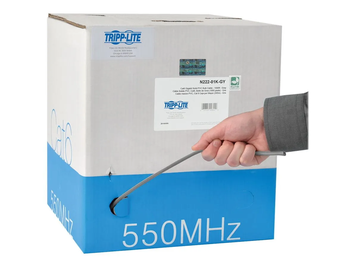 Tripp Lite, Cable, Cat6 Gigabit, Bulk Solid, PVC, Gray, 1000FT