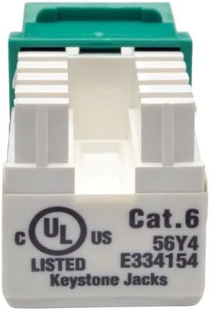 Build a fast and efficient network infrastructure with the TRIPP LITE Cat6/Cat5e 110 Style Punch Down Keystone Jack (N238-001-GN) in vibrant green. Designed for structured cabling installations, this keystone jack supports both Cat6 and Cat5e Ethernet cables, offering backward compatibility and excellent flexibility for various networking needs. Its 110-style punch-down design ensures a secure and reliable termination for solid wire conductors, ideal for use in patch panels, wall plates, and surface-mount boxes.