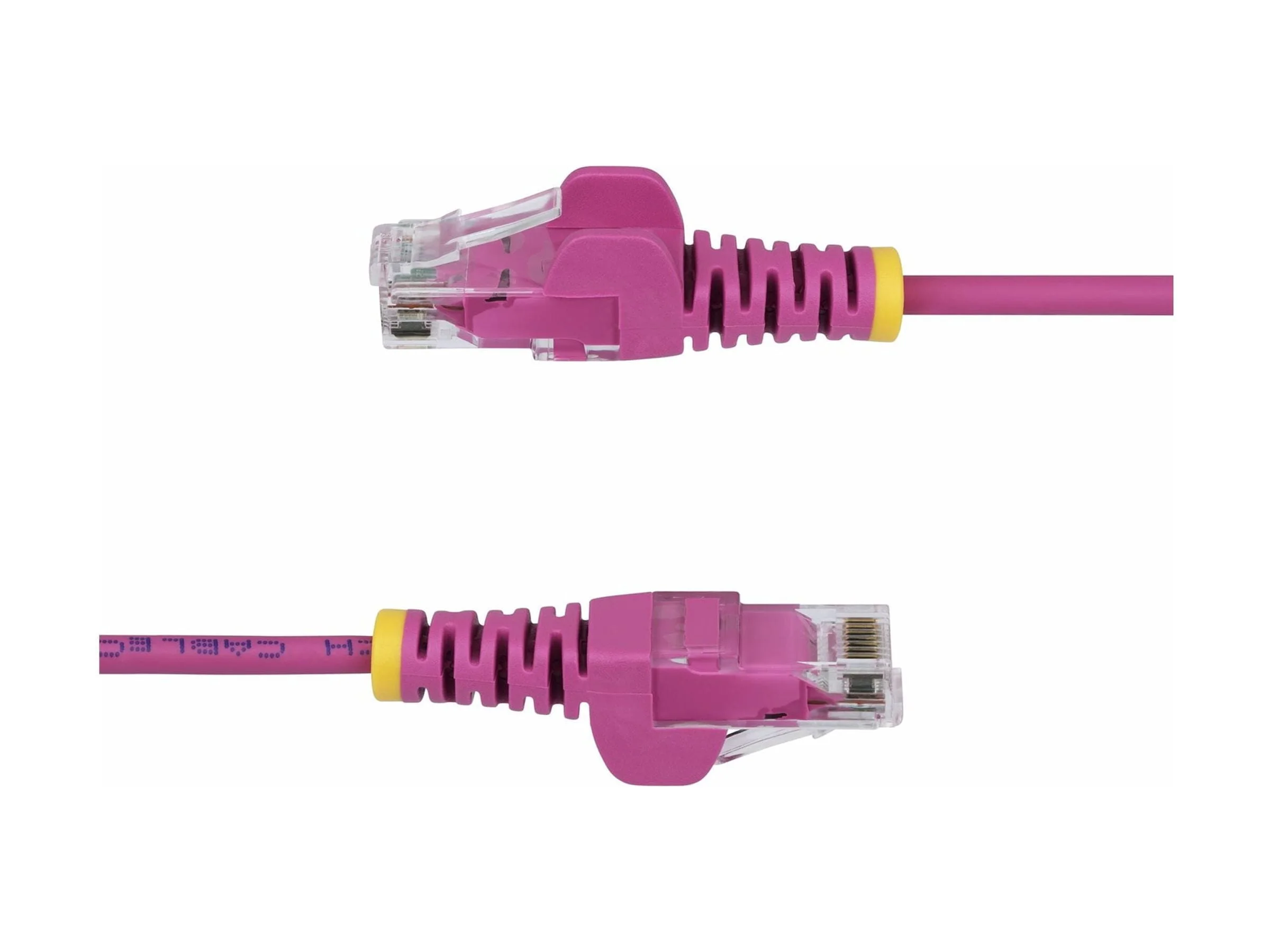 Slim Cat6 Cable is ideal for routing through tight spaces; Enhance accessibility when troubleshooting and promote improved airflow - Supports up to 90W PoE; Compatible w/Gigabit switches/PoE devices such as IP cameras; Low Near-End Crosstalk (NEXT) and Return Loss (RL) - Gold-plated contacts; 28AWG pure bare copper; Flexible Low Smoke Zero Halogen (LSZH) jacket; Safe for enclosed/poorly ventilated spaces - 50-foot; Pink; Snagless; 1Gbps; 90W PoE++; UTP; 0.14in O.D.; Fluke Tested