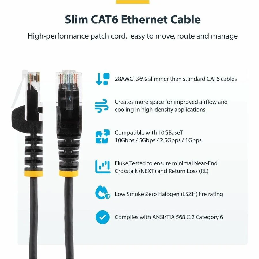 9IN PURPLE SLIM CAT6 ETHERNET CABLE, SNAGLESS, 100W POE, UTP, LSZH, 28AWG BARE C