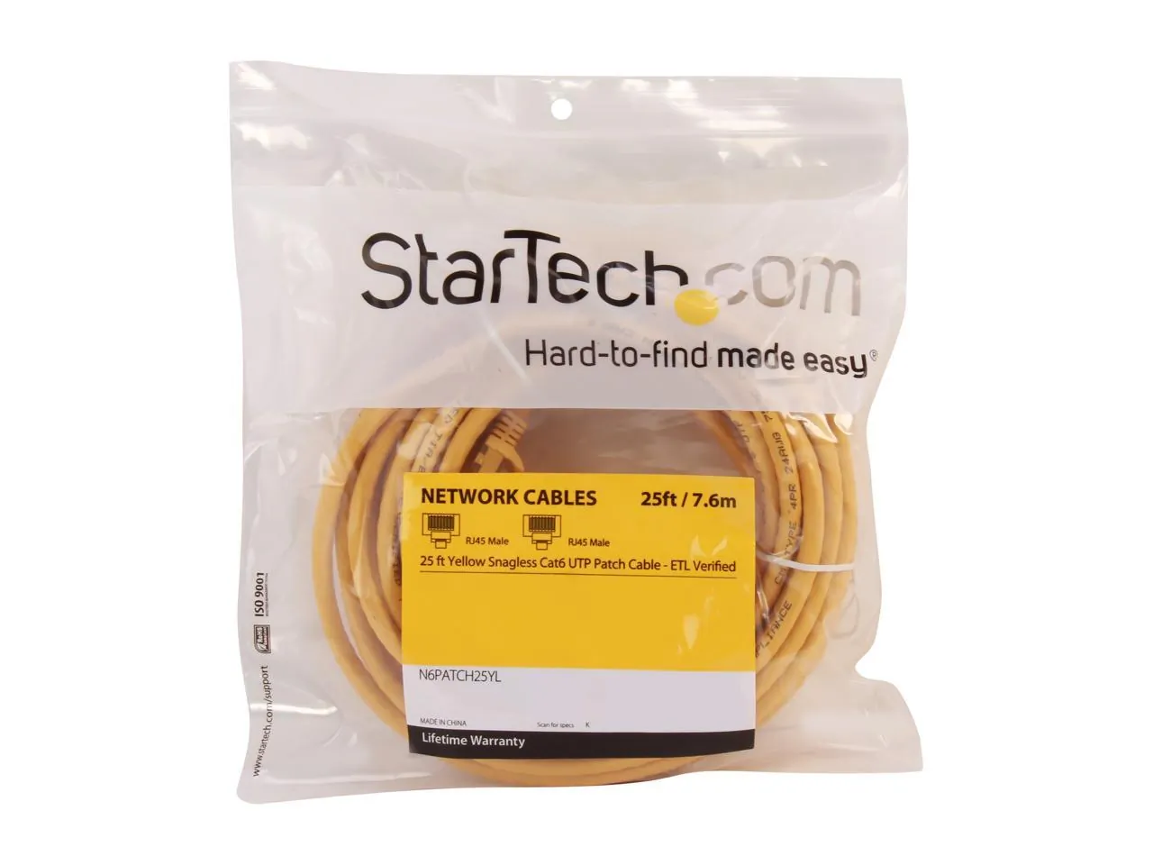 StarTech.com N6PATCH25YL 25 ft. Cat 6 Yellow Snagless Cat6 UTP Patch Cable
