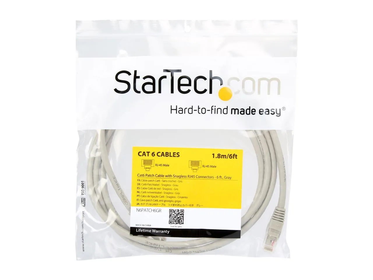 The StarTech 6ft Cat 6 Gray Network Cable provides reliable connectivity for your networked devices. With a maximum data rate of 10 Gbps, this cable is perfect for high-speed internet and data transfer needs.