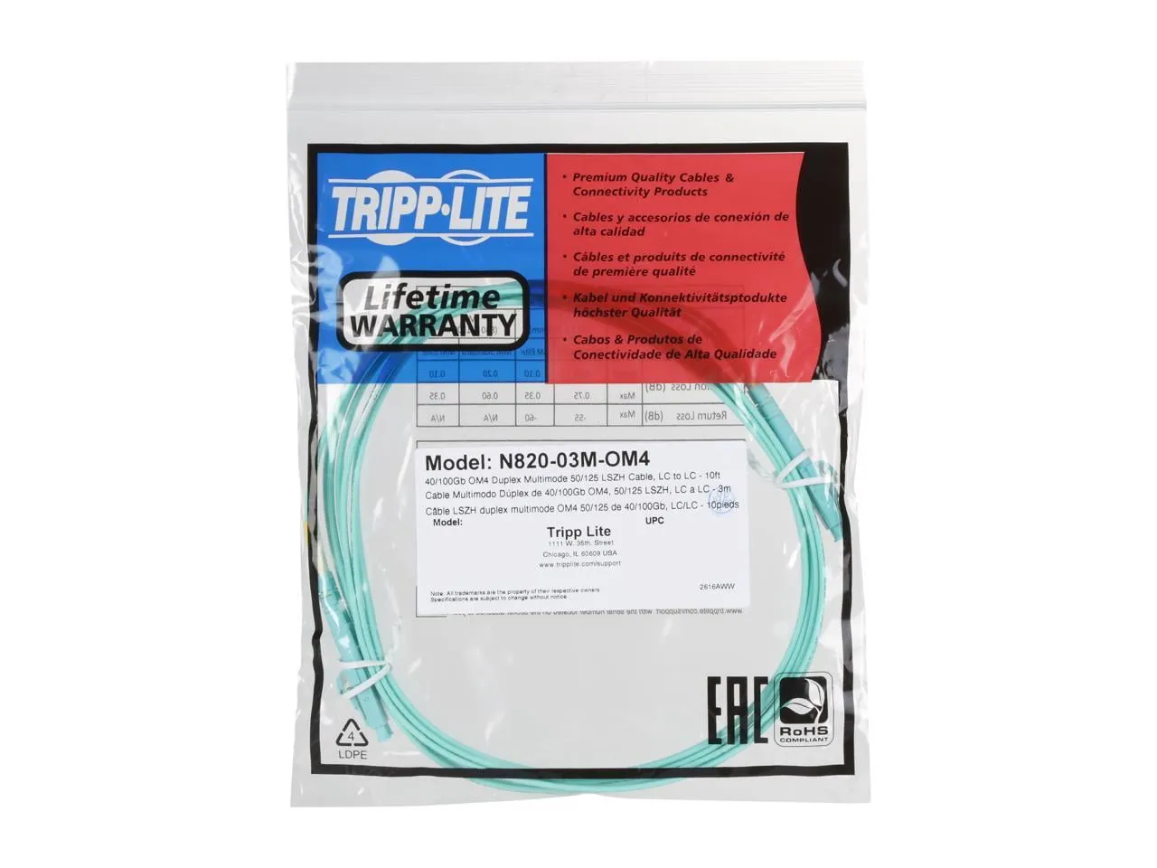 3 Meter ( 10ft ) Duplex Multimode 50/125 Aqua OM4 Fiber Patch Cable, LC/LC Item Dimension (L"xW"xH")