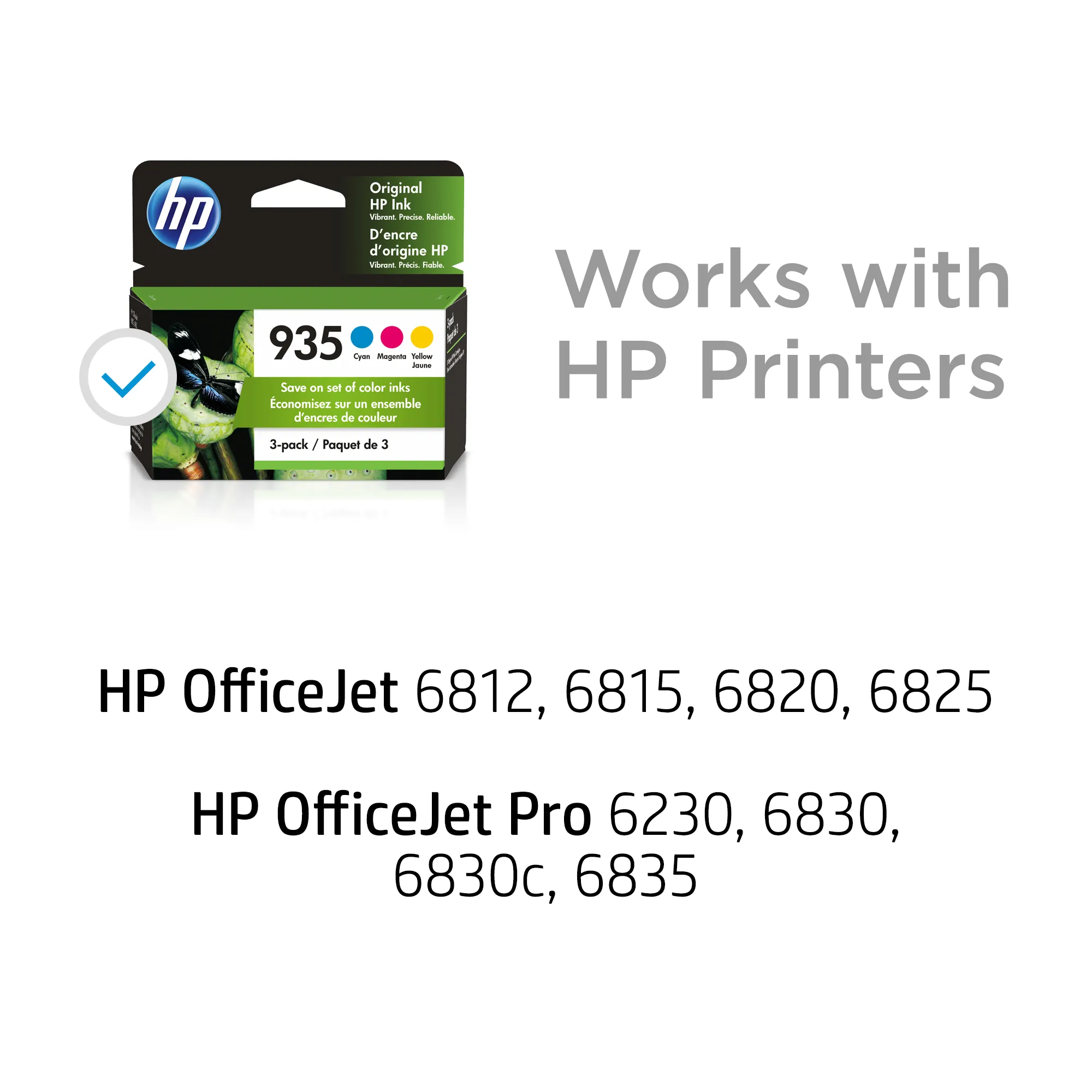Original HP ink cartridges in this three-pack are formulated to consistently produce professional-quality documents at a great value. Count on durable prints from a cartridge specially designed to work with your HP Officejet 6230, 6812, 6815, 6820, 6825, 6830 or 6835. HP proprietary inks prevent corrosion and clogging of the printhead - ensuring the best prints. It generates durable prints that resist water and last for decades. Highlight pages right away without worrying about smears. Each HP 935 cartridge yields approximately 400 pages.