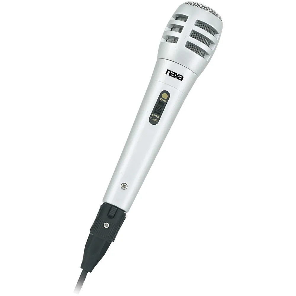 The Naxa Professional Condenser Microphone is designed for high-quality audio recording and performance. It features a sleek, lightweight design, making it easy to handle and use for extended periods. The microphone comes with a 16.5 ft. long cord, providing ample length for stage and studio setups, and includes detachable connectors for versatility.