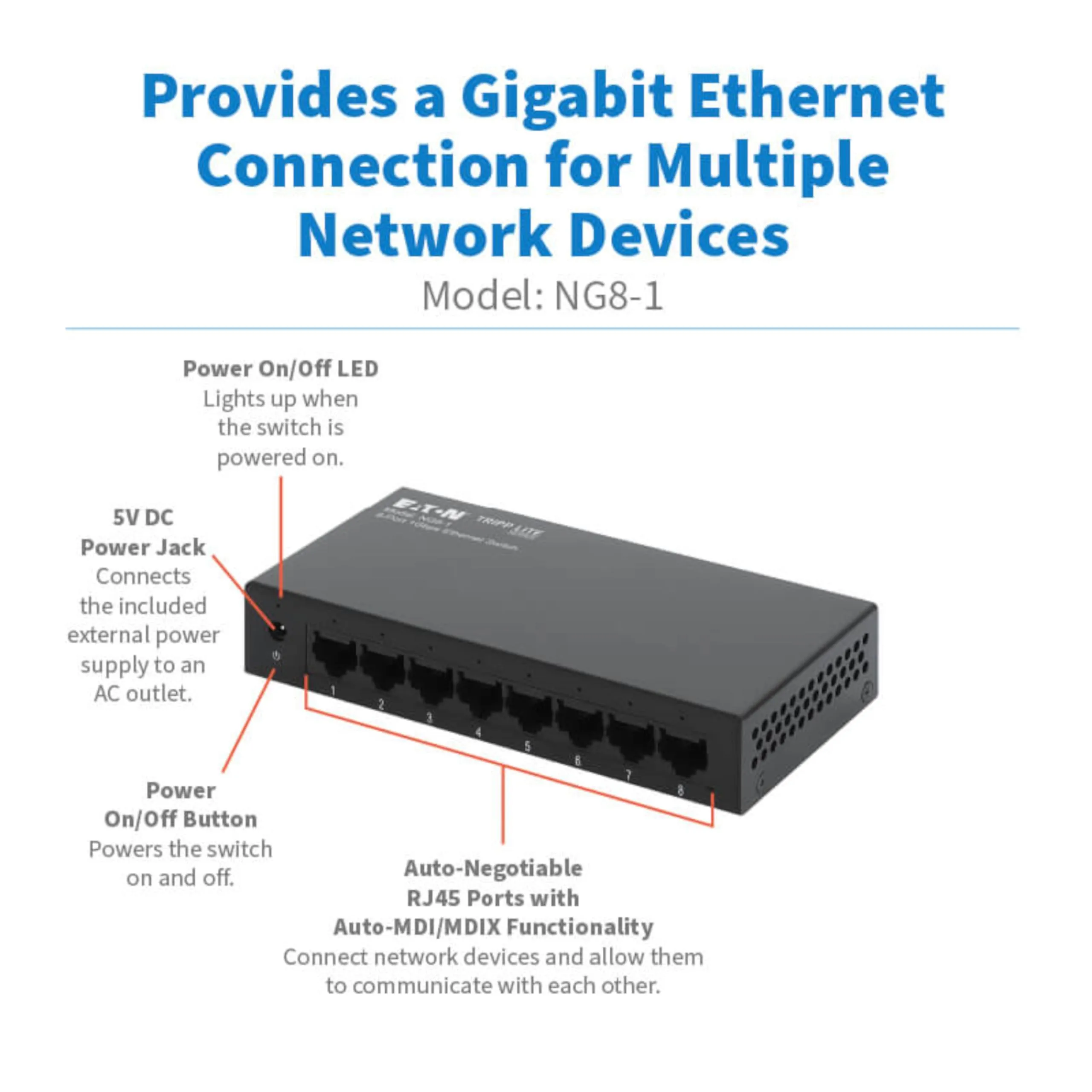 8-PORT 10/100/1000 MBPS DESKTOP GIGABIT ETHERNET UNMANAGED SWITCH, METAL ENCLOSU