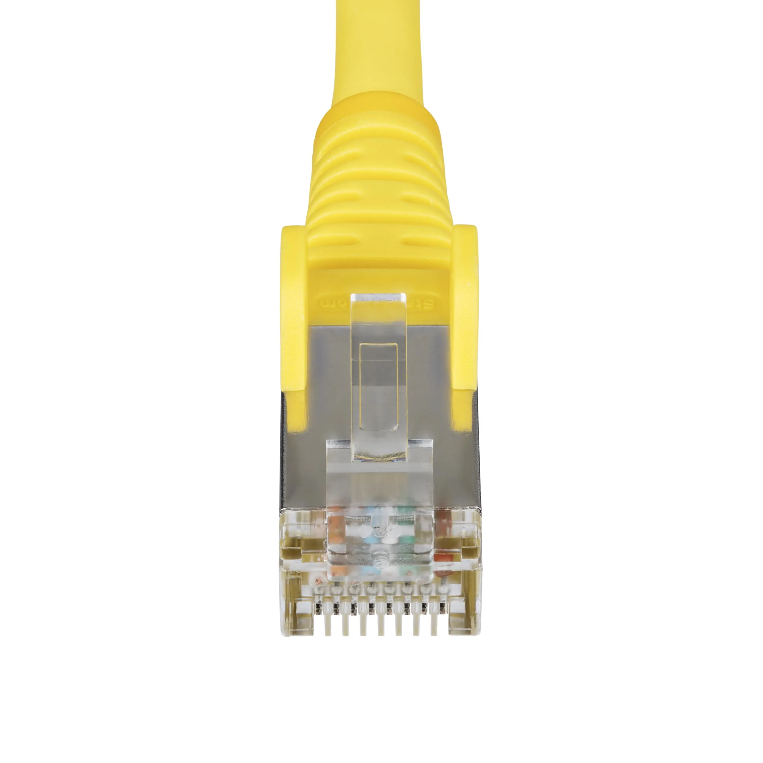 Snagless S/FTP Cat6a cable is optimized for 10G networks; Supports up to 100W PoE; Ideal for 10GBASE-T switches/PoE devices such as IP cameras/Access Points - 500MHz range enhances signal reliability; Low Near-End Crosstalk (NEXT) and Return Loss (RL) - Gold-plated connectors; 27AWG pure bare copper w/braided shield; Low Smoke Zero Halogen (LSZH) jacket is safe for enclosed/poorly ventilated spaces - 50-foot; Yellow; Snagless; 10Gbps; 100W PoE++; S/FTP; 0.22in O.D.; Fluke Tested/ETL Verified