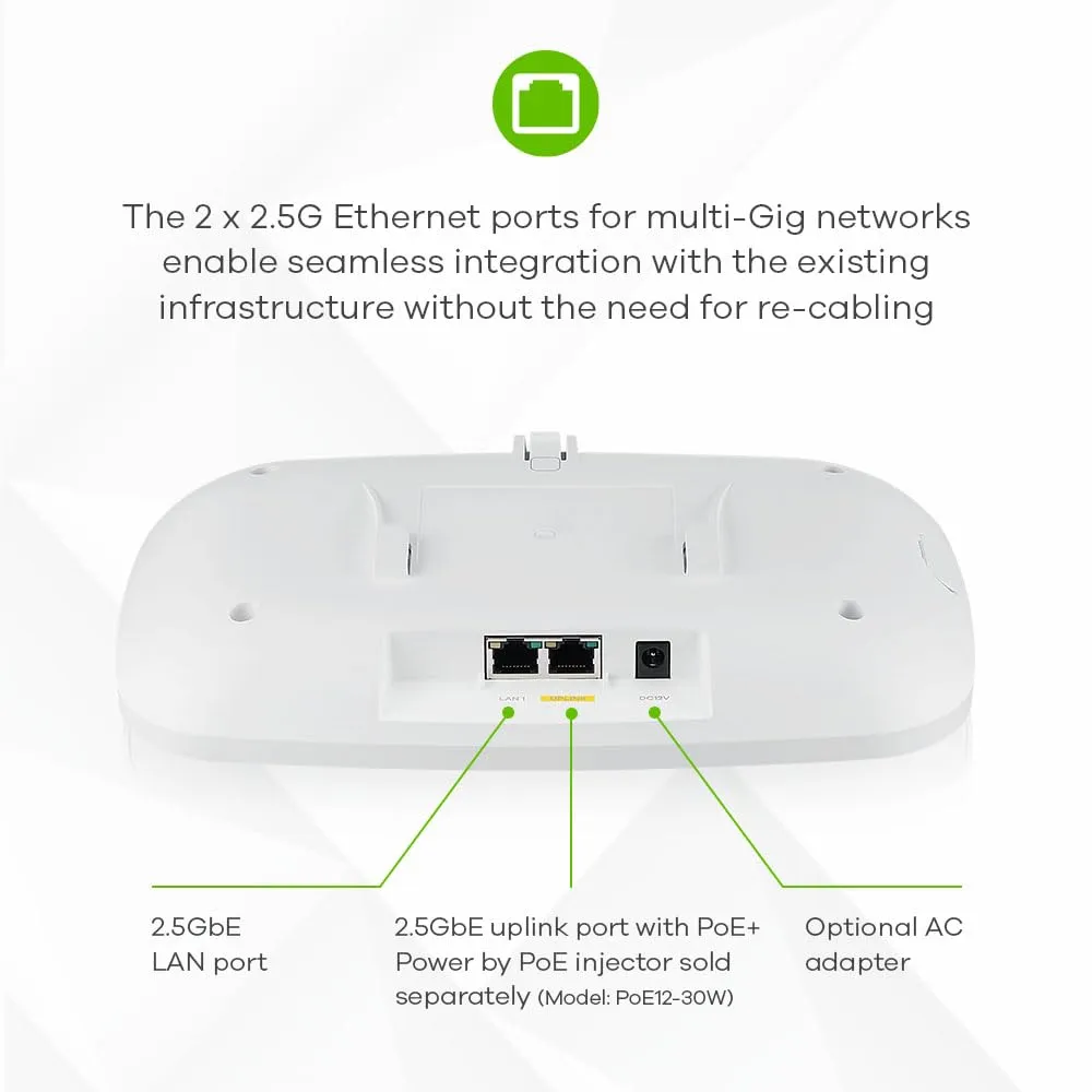 The Zyxel WiFi 7 NebulaFlex Access Point delivers exceptional performance with tri-band connectivity and speeds reaching up to 11Gbps. Designed for enterprise environments, this access point is powered by a robust Qualcomm quad-core CPU that enhances both speed and capacity. With its advanced management and security features from Zyxel Nebula, businesses can enjoy reliable connectivity that meets the demands of modern workplaces.