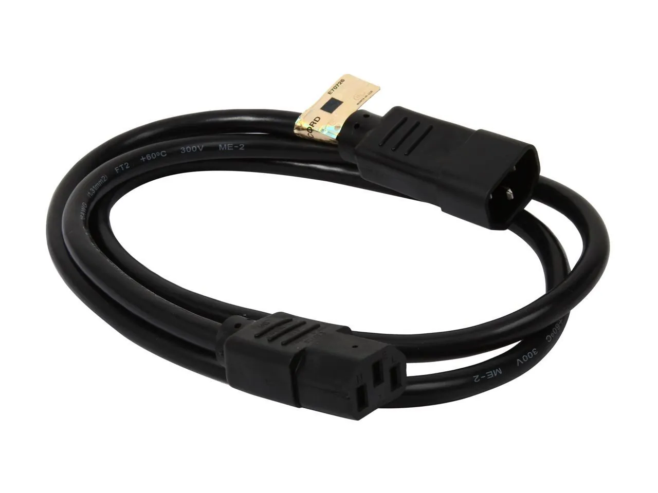 This IEC-320-C14 to IEC-320-C13 cable is designed for small data center, office workstation and other lower-amp applications. This C14 male to C13 female cord can be used to power a computer, server or monitor; attach a server or drive to a UPS system or PDU; or extend an existing connection up to 4-ft. (1.22 m). The 4-ft. (1.22 m) length helps reduce cable clutter and minimize the risk of tripping.