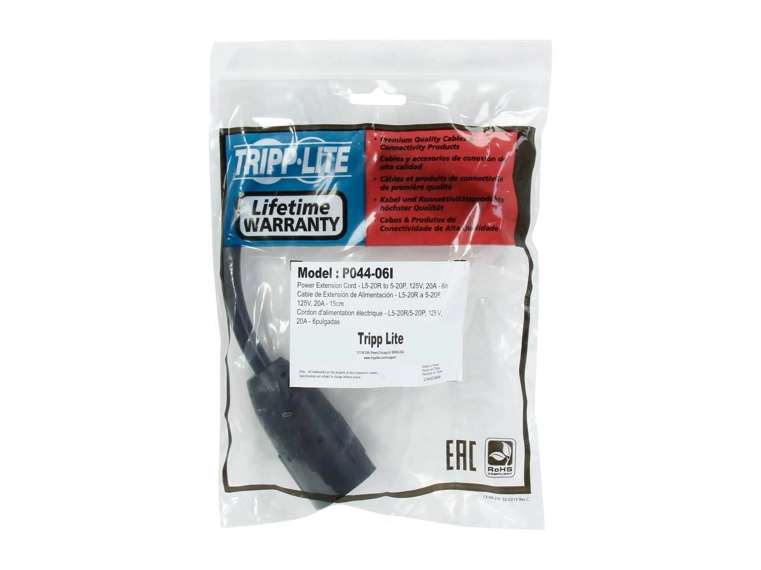 Heavy-Duty Power Adapter Cord 20A 12AWG (NEMA-L5-20R to NEMA-5-20P) 6 In