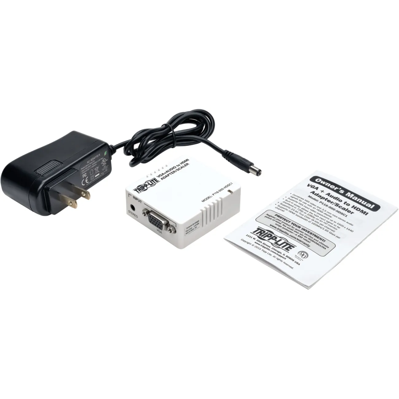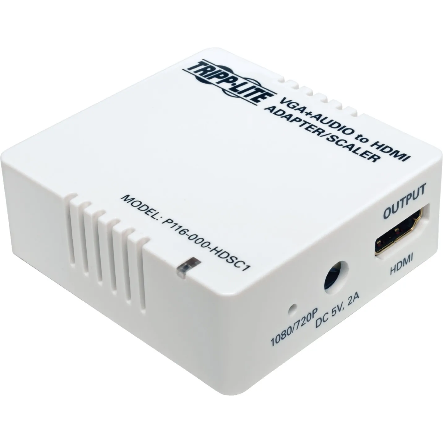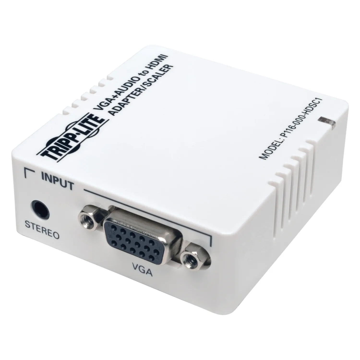 Tripp Lite P116-000-HDSC1 VGA with Audio to HDMI Converter/Scaler:Built-in scaler converts VGA video for display on HDMI monitorUpgrades VGA input signal to 720p or 1080pSupports computer input video resolutions up to 1920 x 1440