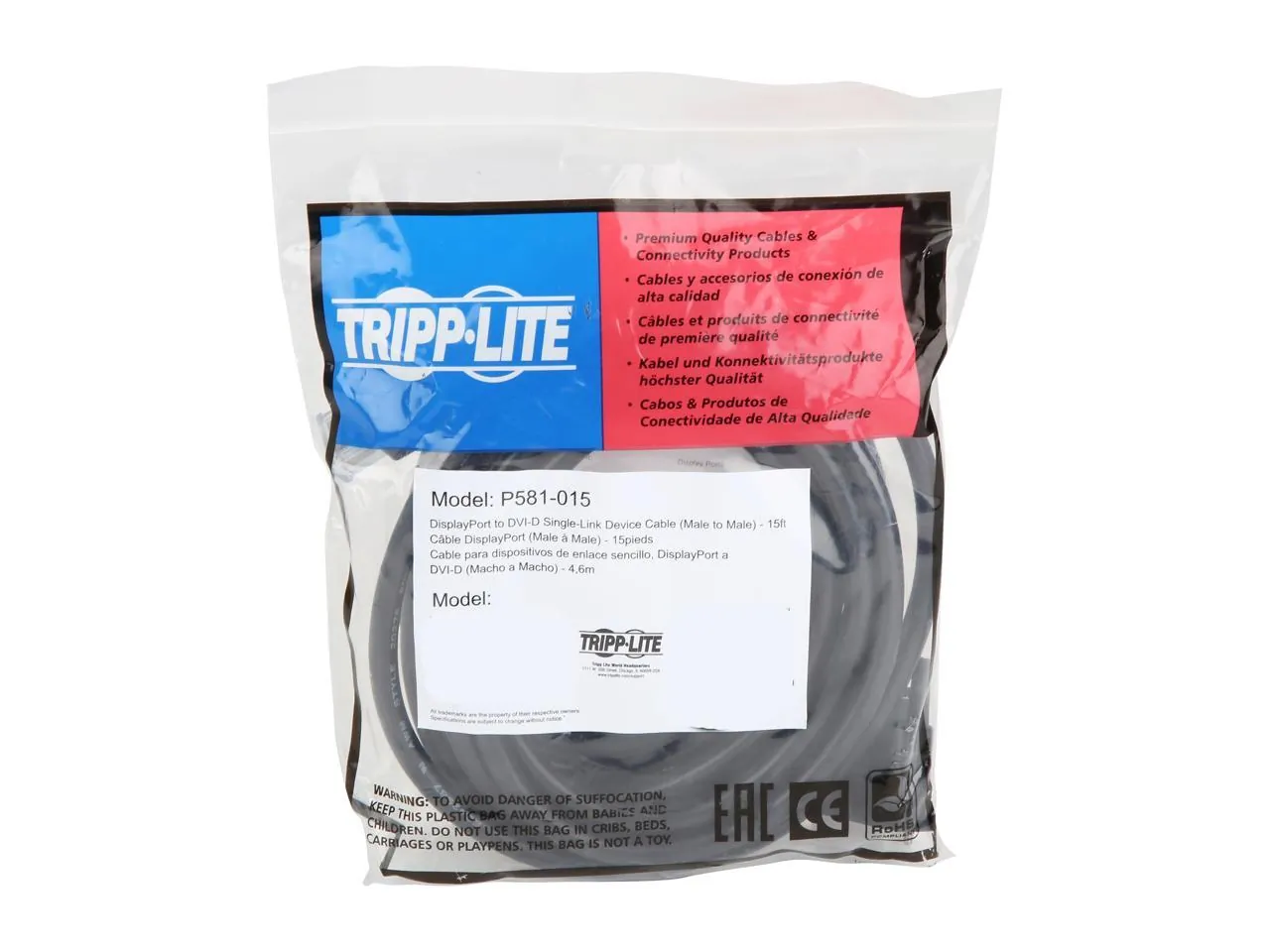 Tripp Lite DisplayPort to DVI-D Adapter Cable DP w/ Latches M/M 1080p 15ft DP to DVI