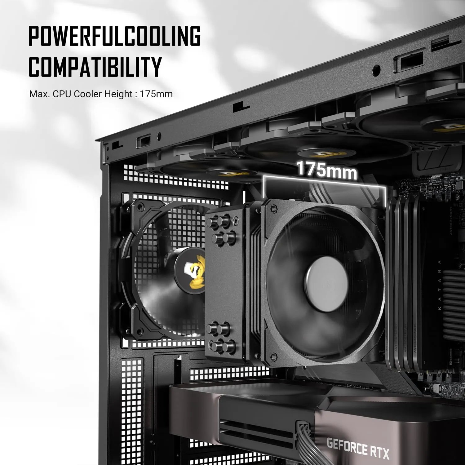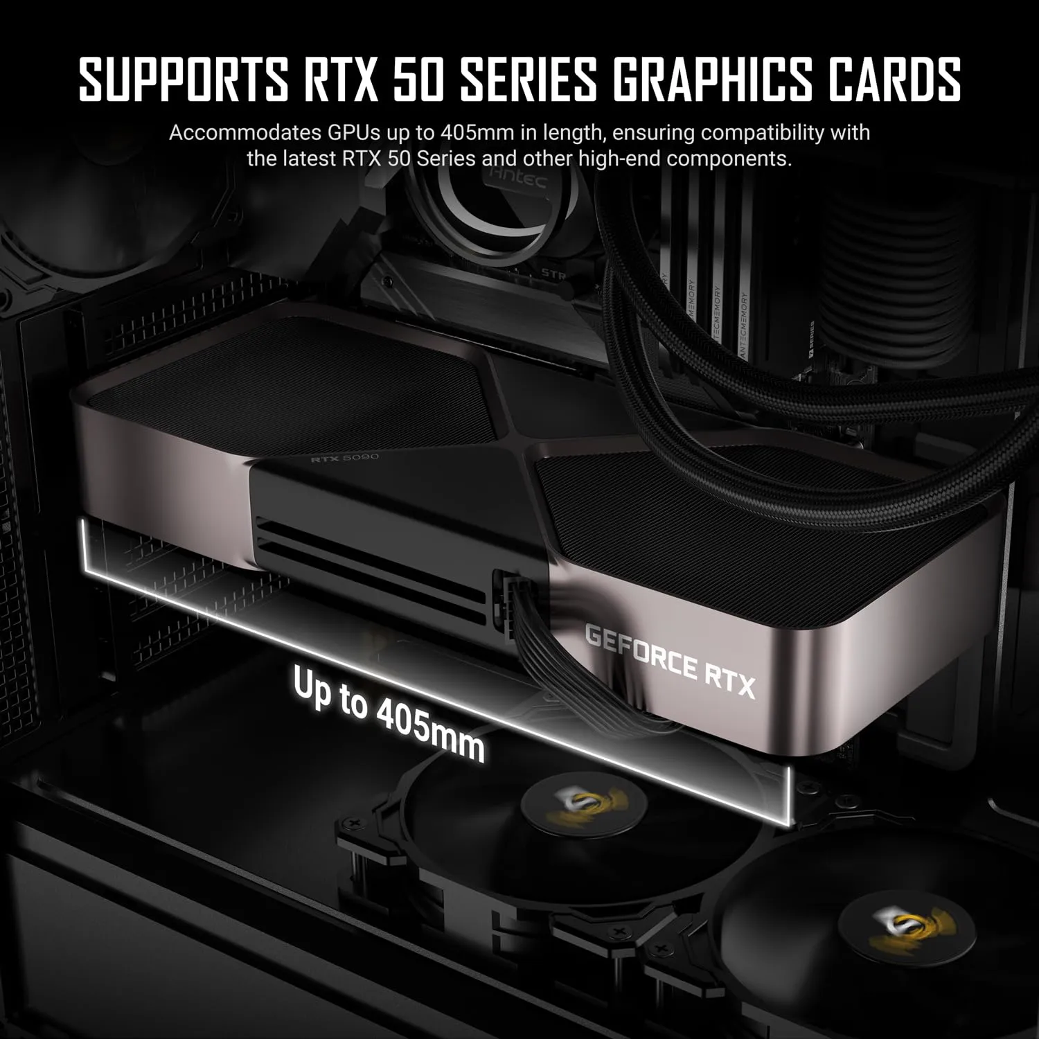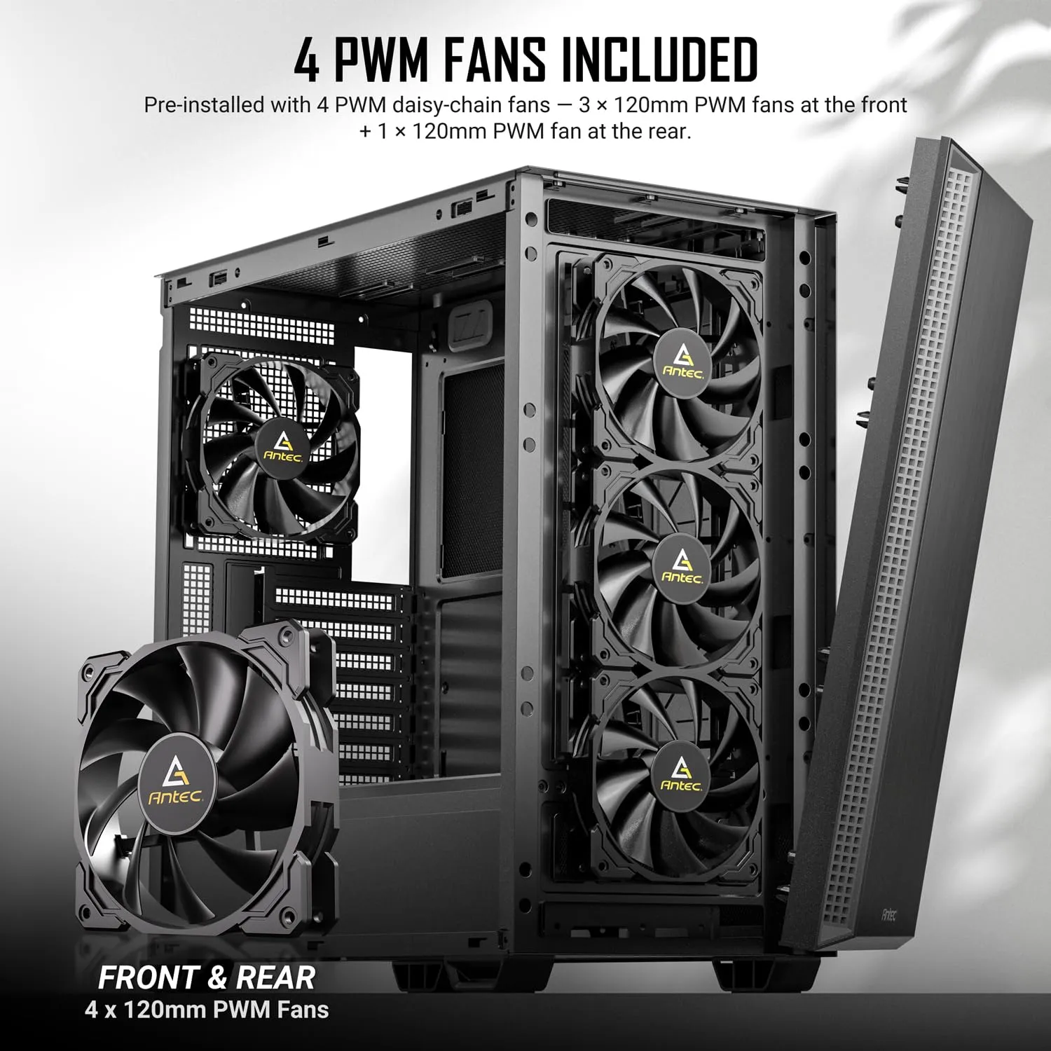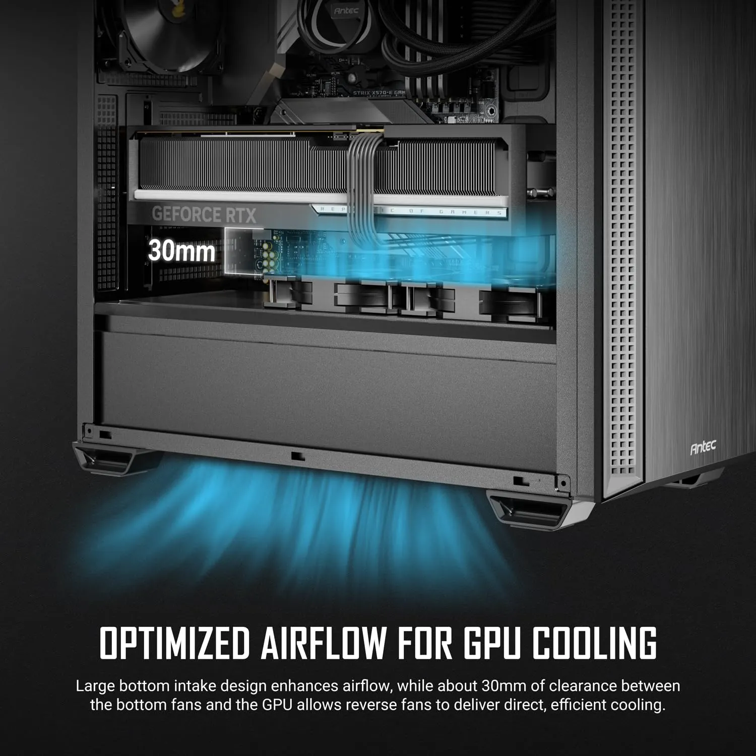 The Antec P7 S is a versatile mid-tower ATX PC case designed for optimal airflow and cooling performance. It features dual side mesh intake panels, allowing for superior airflow to keep your components cool during heavy usage. With support for a 360mm radiator on the top, this case is perfect for water cooling enthusiasts. The Type-C 3.2 Gen 2 port provides fast connectivity, while the sound-dampening panels help to minimize noise, creating a quieter gaming or work environment.