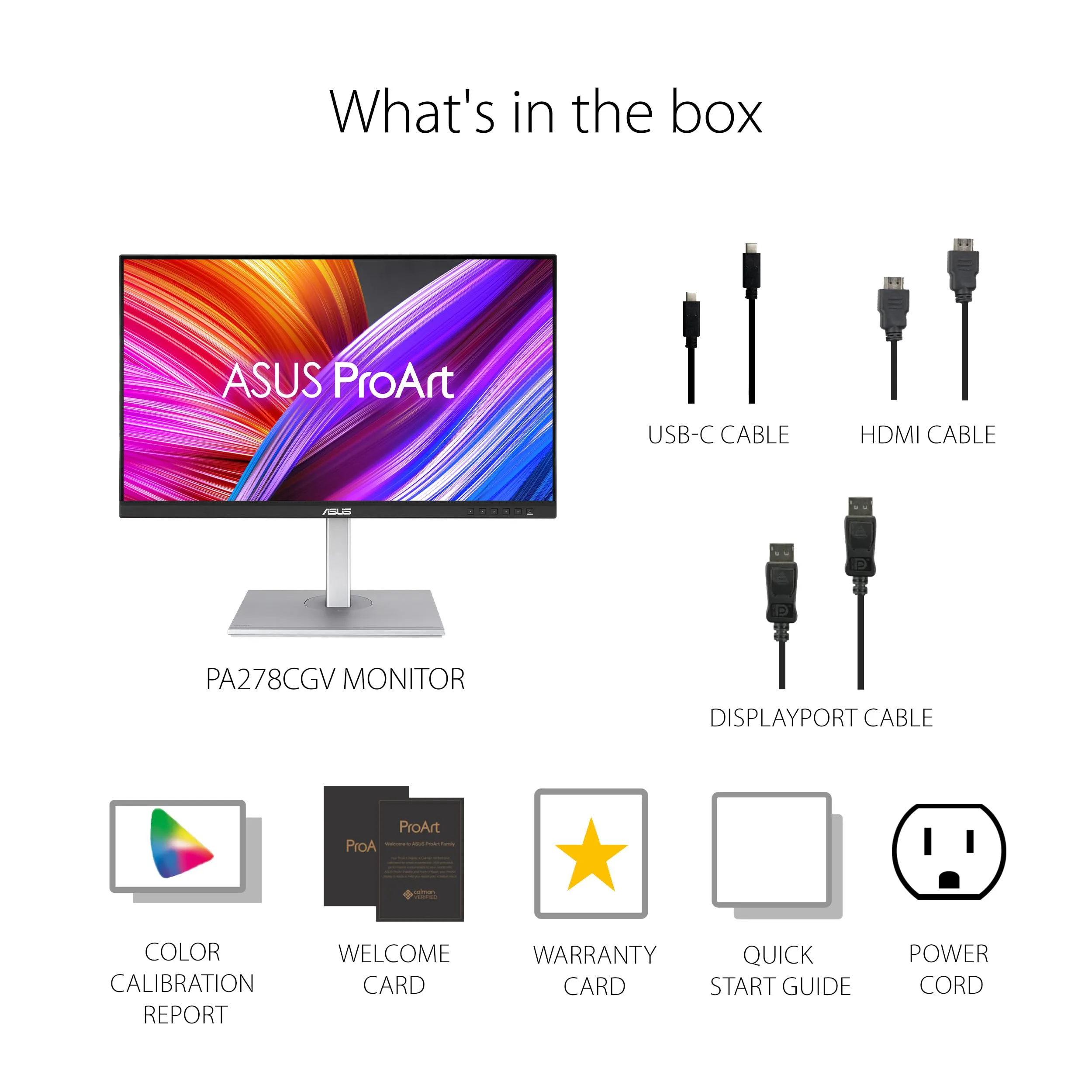 The ASUS ProArt Display PA278CGV is a 27-inch professional monitor designed for creative professionals who require exceptional visual quality and performance. With a QHD resolution of 2560 x 1440, this monitor delivers stunning image clarity. The IPS panel provides wide viewing angles and vibrant colors, covering 95% of the DCI-P3 color space.