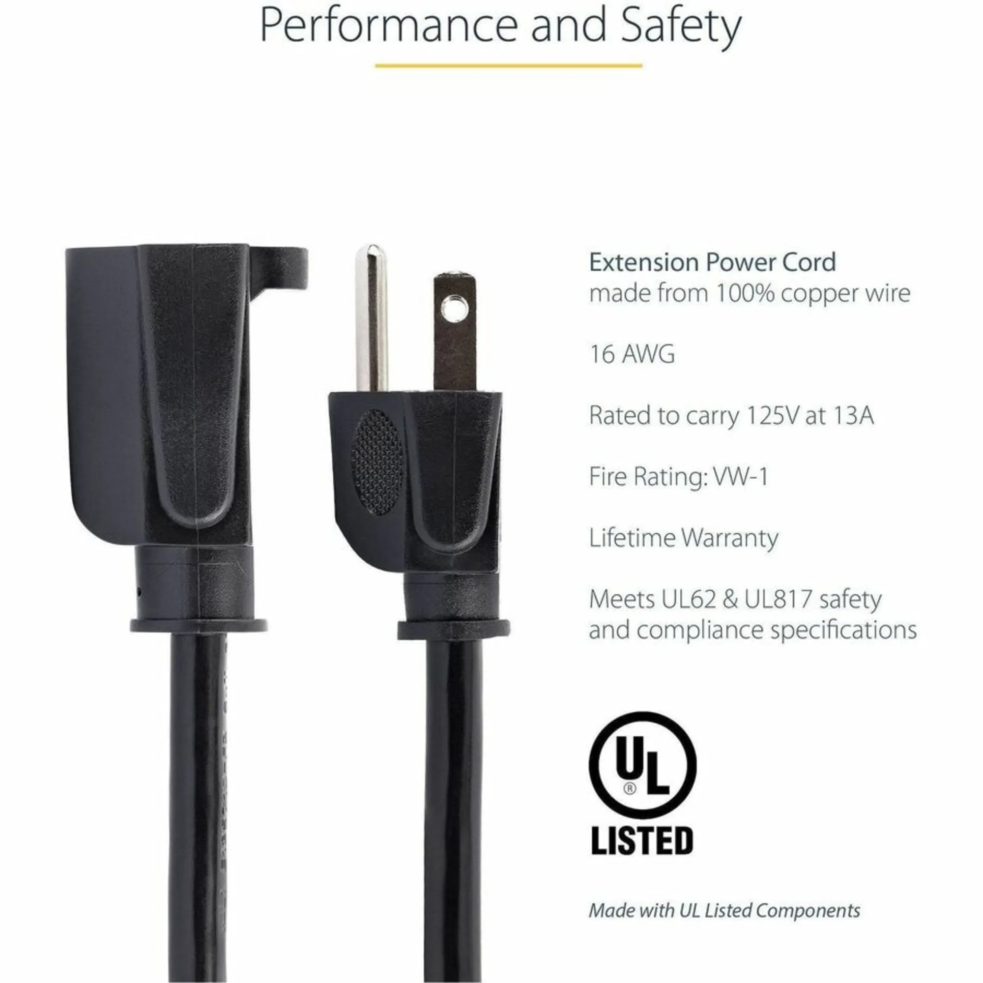 15 ft Power Cord Extension - NEMA 5-15R to NEMA 5-15P