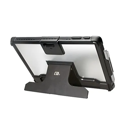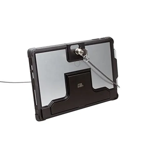 This sleek, portable security enclosure offers exceptional functionality while protecting your Surface Pro 4 from theft, making it an invaluable accessory for conference rooms, classrooms, restaurants, and offices. The streamlined case features two nano composite cooling pads to reduce heat, a built-in folding kickstand for easy tabletop setup, a convenient stylus holder grip, plus openings for all cameras, ports, and jacks. Your tablet stays protected with the K-slot style galvanized steel anti-theft cable, which attaches easily to any permanent fixture and unlocks with a set of keys. Features: Case includes openings for all cameras, ports, and jacks. Built-in folding kickstand. Two nano composite cooling pads reduce heat. Stylus holder grip on case. Protects against theft with galvanized steel cable. Perfect for conference rooms, classrooms, restaurants, and offices. Compatible with Surface Pro 4; compatible with credit card readers.
