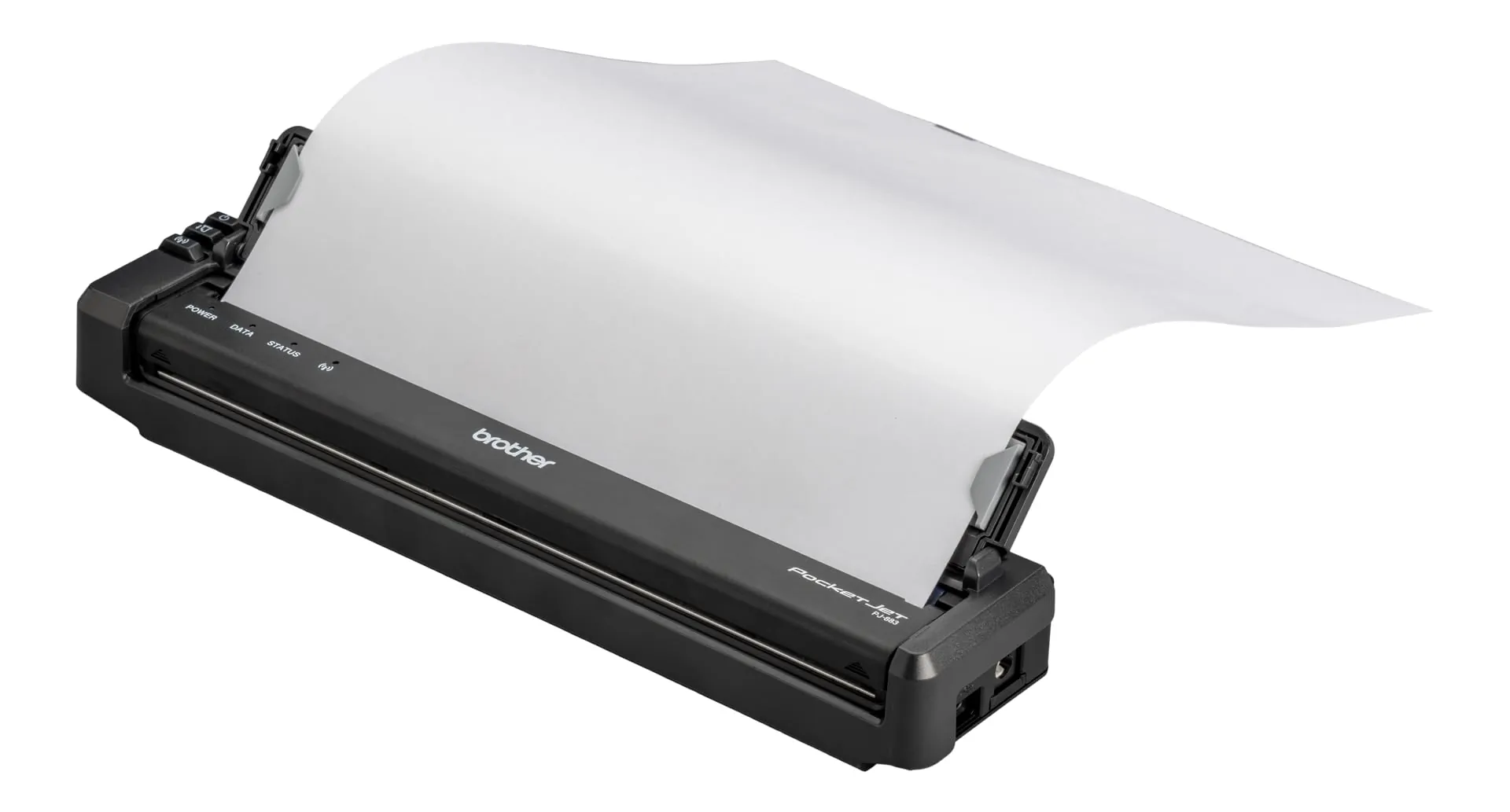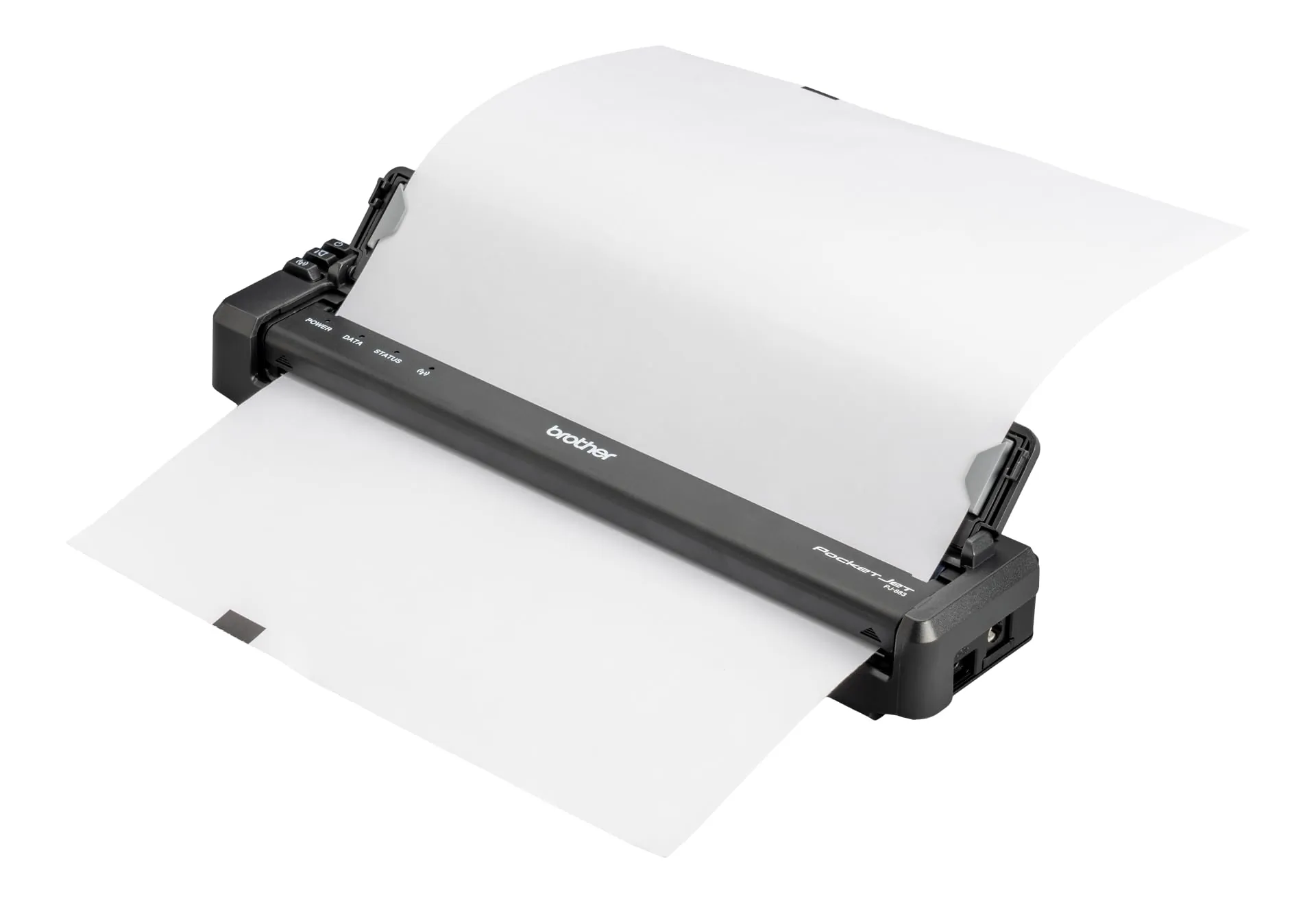 The PocketJet 8 Adjustable Folding Paper Guide is designed specifically for use with PocketJet BT and WiFi units. It features an easy-to-use three-button mechanism for quick adjustments.