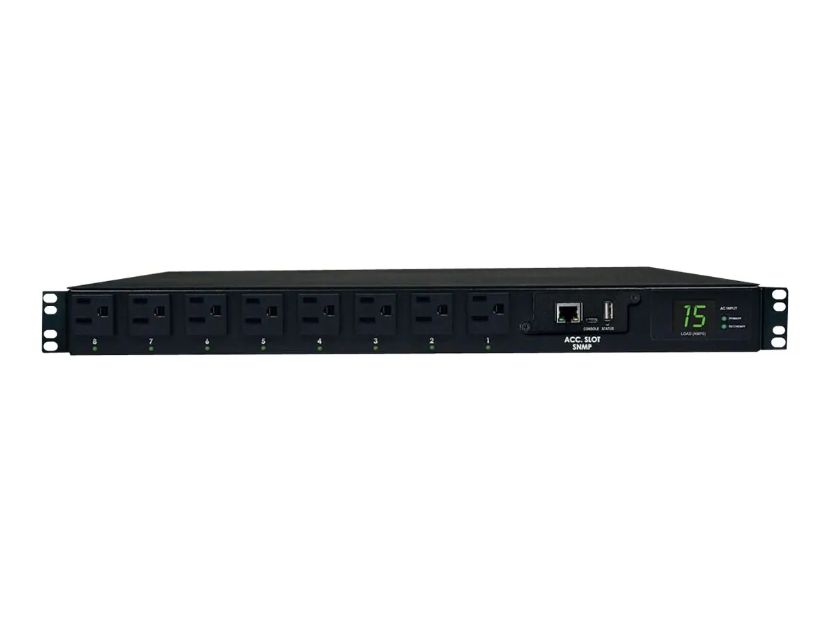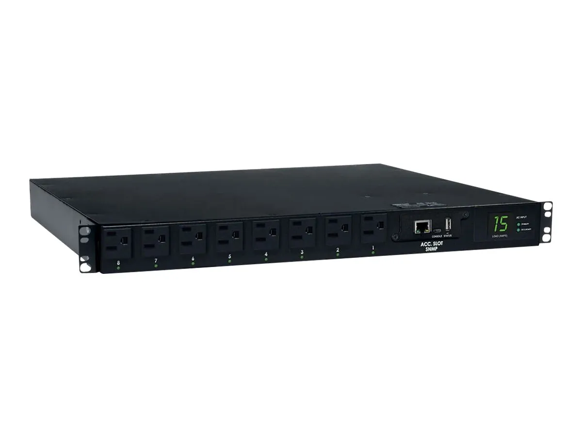 Keep your computer equipment protected with this Tripp Lite PDU, PDUMH15ATNET. It features a rack mountable design and can be installed horizontally or vertically. This switched PDU ATS features 8 outlets and it operates at 120V with 15A.