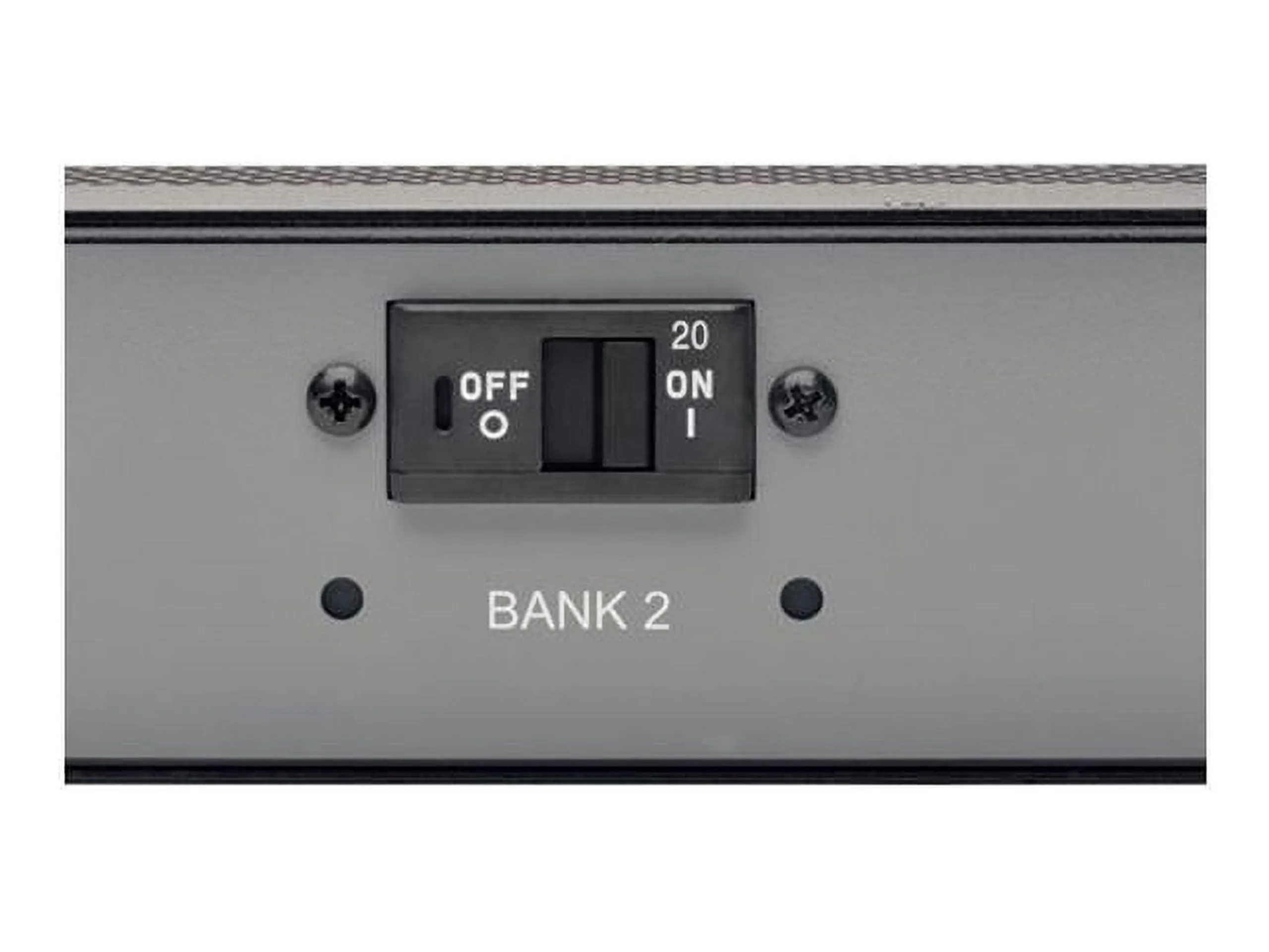 Supports local monitoring of output current for each output load bank Outlets, circuit breakers and current meters are color-coded and labeled for easy identification (Black: 20A Bank 1 / Gray: 20A Bank 2)