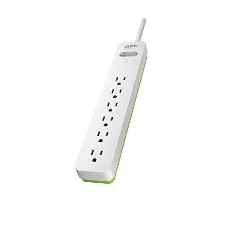 APC essential SurgeArrest PE66W - surge protector - AC 104-126 V - 1200 watt - output connectors: 6 - 6 ft. - white, Green