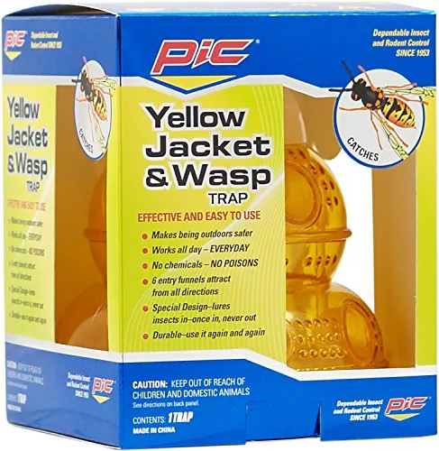 • Yellow jacket & wasp trap ;• No chemicals, no poisons ;• 6 entry funnels attract from all directions ;• Once in, insects cannot get out;• Durable & reusable;