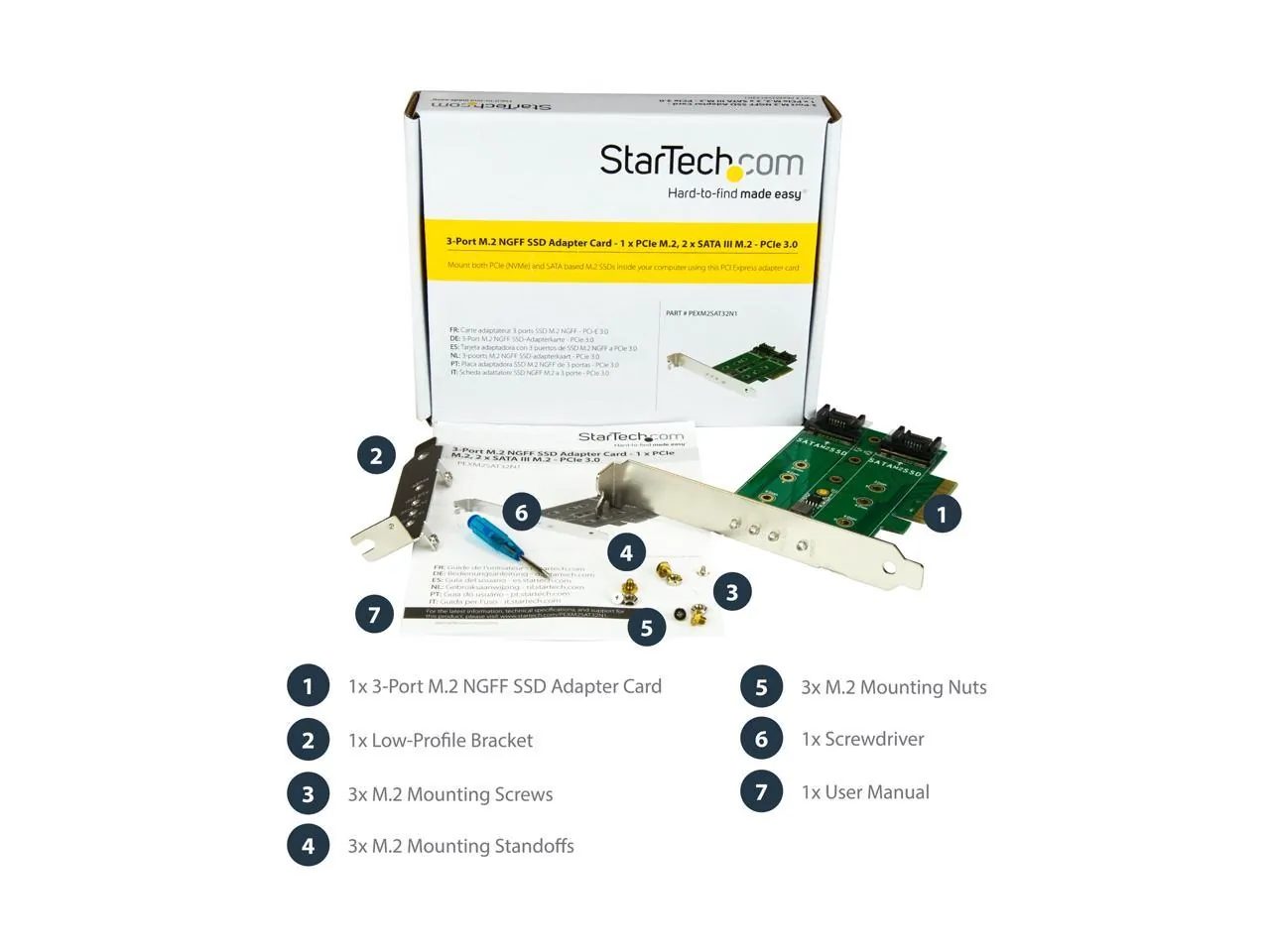 StarTech.com PEXM2SAT32N1 M.2 Adapter - 3 Port - 1 x PCIe (NVMe) M.2 - 2 x SATA III M.2 - SSD PCIE M.2 Adapter - M2 SSD - PCI Express SSD