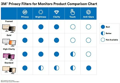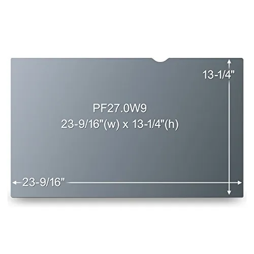 Privacy filter helps protect your screens and keep the confidential and sensitive information displayed on them private. It adds an extra layer of protection from everyday scratches and dust. Ingenious microlouver technology delivers world-class, effective privacy and reduces 35 percent of blue light transmission from the display. You get crisp image clarity on your monitor while visual hackers with side views outside the 60-degree viewing angle are kept in the dark. The matte surface helps reduce glare and hide fingerprints so you get crisp image clarity on your screen. Privacy filter is easy to attach, remove and clean. It is designed to seamlessly fit within the raised bezel of your wide-screen monitors with a diagonally measured, 27" viewing screen and a 16:9 aspect ratio. Actual filter dimensions are 23-9/16" wide x 13-1/4" high (598mm x 337mm).