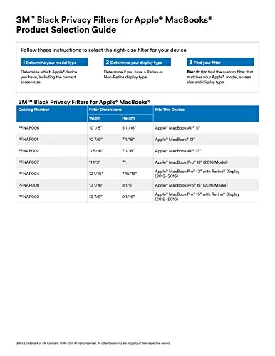 Keeps your personal or confidential information safe from prying eyes.You'll see the information on your display while people on either side only see a darkened screen.Includes your choice of two easy-to-use attachment methods.Reversible, matte side reduces glare and reflections.Lightweight, thin, frameless design.Protects display from dirt, debris and scratches.Cleans easily with a soft cloth and water.Includes a convenient storage folder that keeps your privacy filter clean while not in use on your device.Great for high traffic areas such as airports, airplanes, commuter trains, coffee shops and other public places.Model Number: PFNAP002