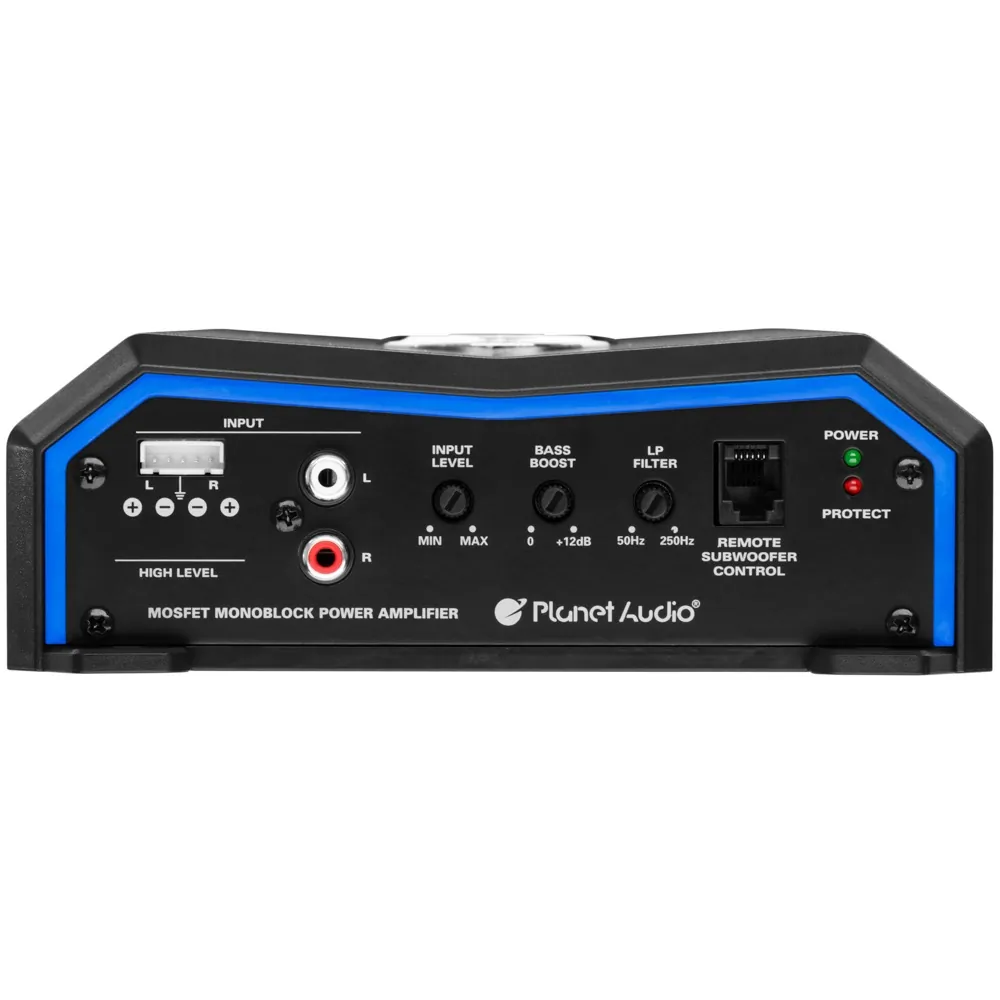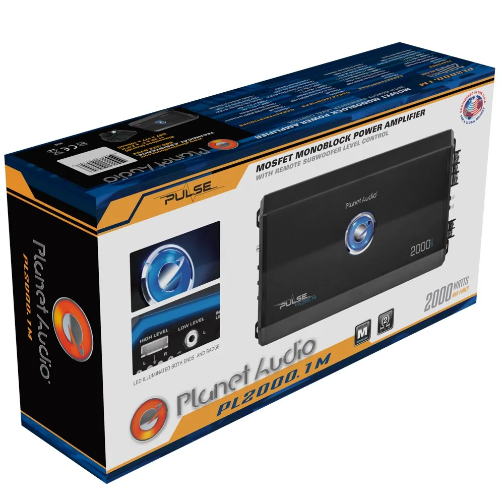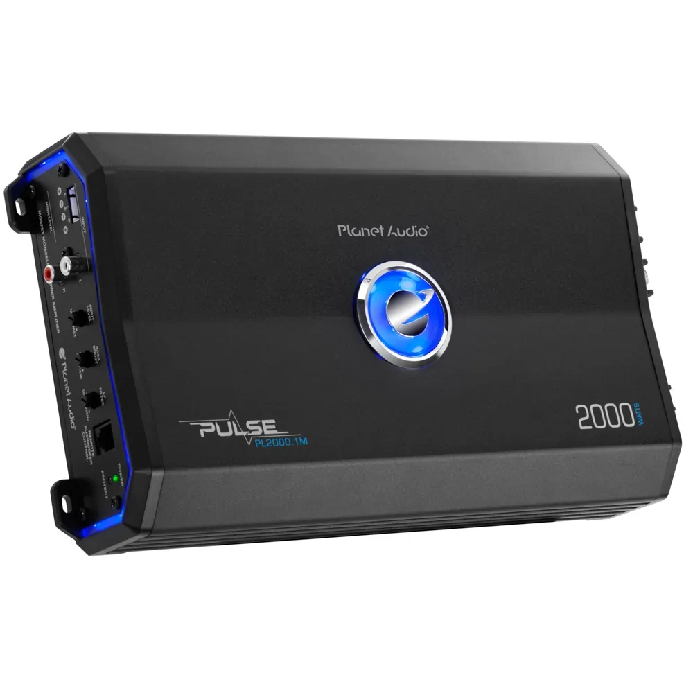 Need to add an amp to power a subwoofer or extra speakers When space is limited, but your passion for great sound and power is not, the Pulse Series Monoblock Class AB MOSFET Amp (2,000 Watts Max) from Planet Audio. It delivers serious power without taking up precious cargo space. FeaturesClass ABMonoblock2 stablePower LED indicatorHigh- & low-level inputsVariable low-pass crossover & variable bass boostBlue illuminated Planet Audio logo & end panel stripsIncludes remote subwoofer control2,000W maxSpecificationsColor: BlackSeries Name: PulseSignal-to-Noise Ratio: 103Total Harmonic Distortion: Battery Information: Product does not require a batteryDimension: 2.26" H x 11.28" W x 7" DWeight: 6.9 lbs- SKU: PETRA16081
