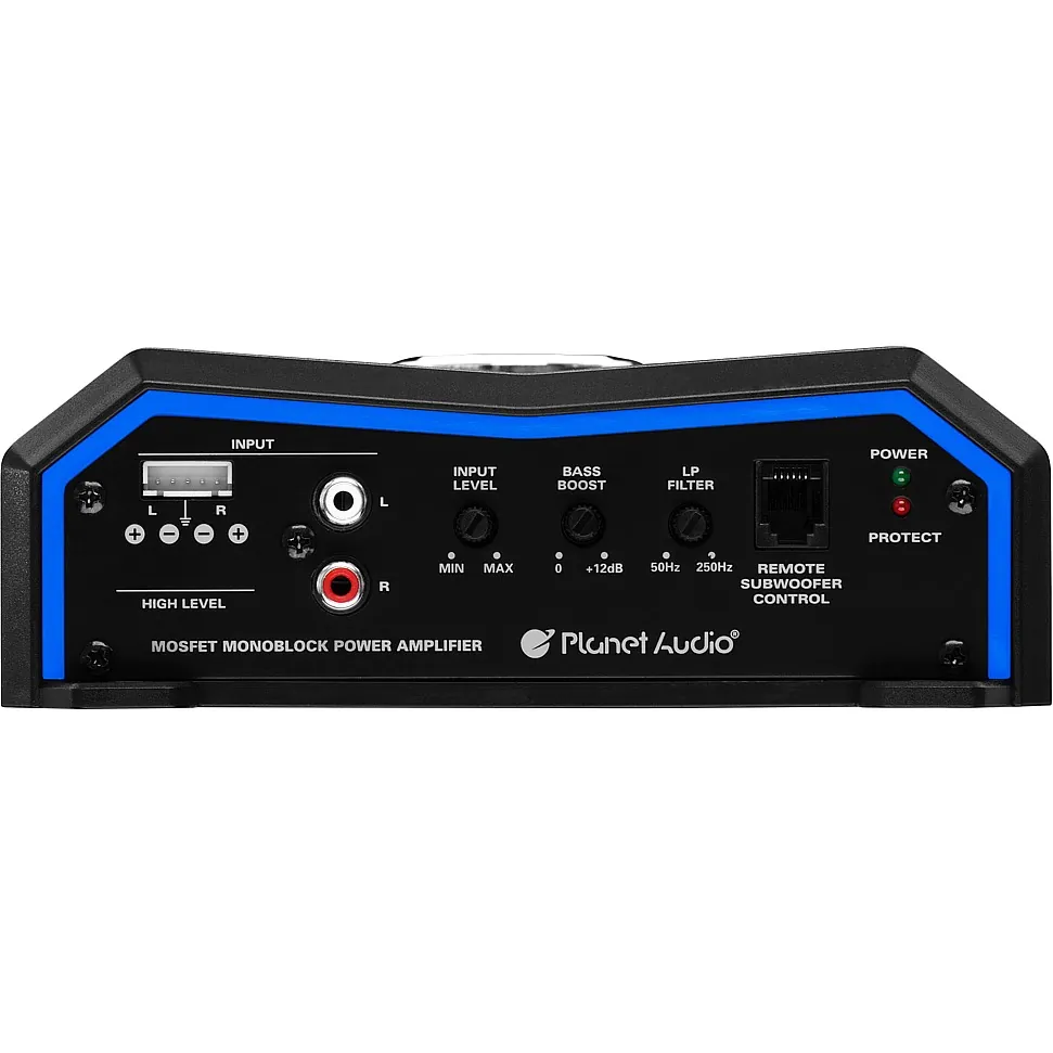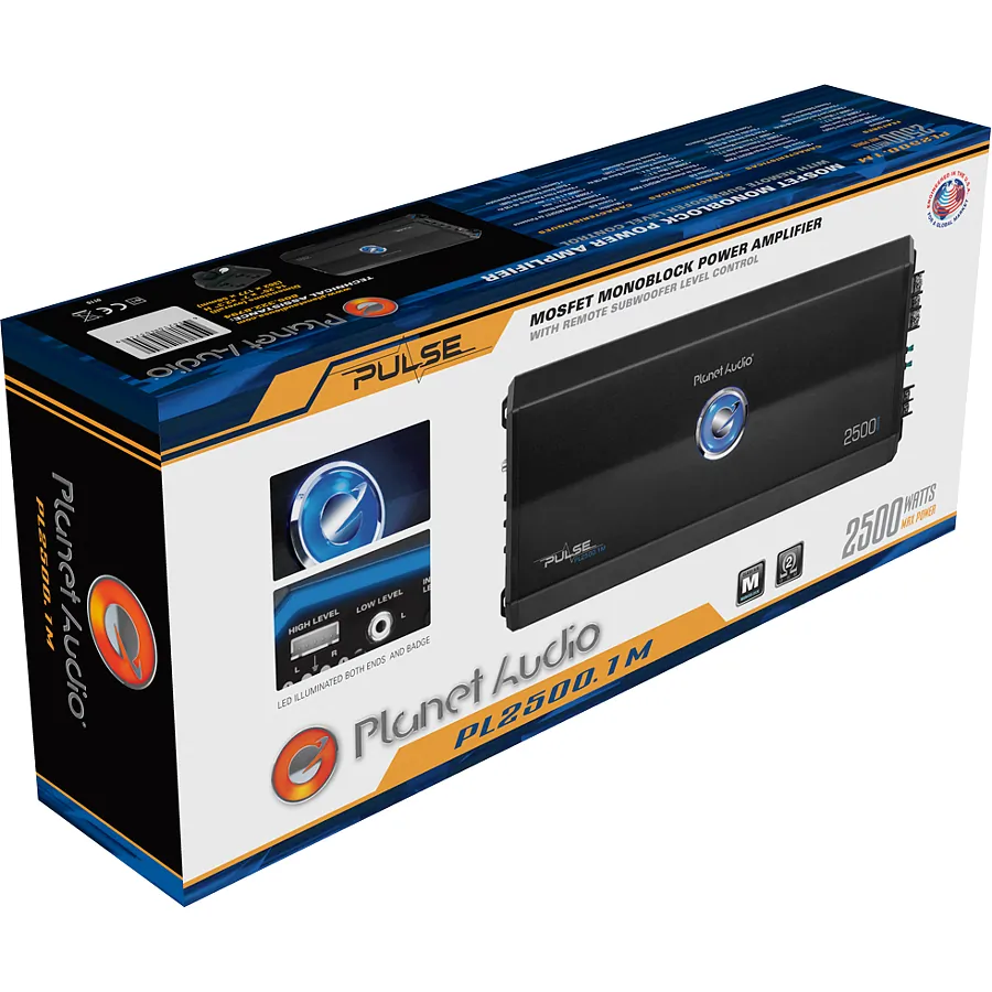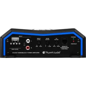 Get ready to experience the power of the Pulse Series from Planet Audio featuring more power, more flexibility, and earth shaking sound. The PL2000.1M is a 2000 watt class A/B monoblock amplifier that will shake up your car audio.This amplifier features high and low level inputs, thermal overload short protection, and a switchable phase control. Customize your settings with the variable low pass crossover and bass boost.It comes with a remote subwoofer control and a slick blue illuminated Planet Audio logo and end panel strips.