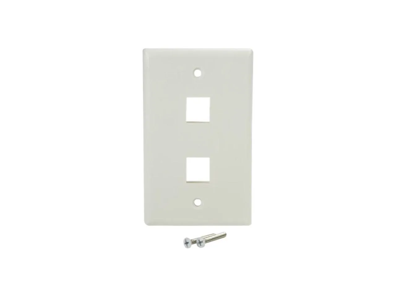 JOB, INCLUDING THE PLATE2WH, A WHITE, 2-OUTLET UNIVERSAL WALL PLATE.