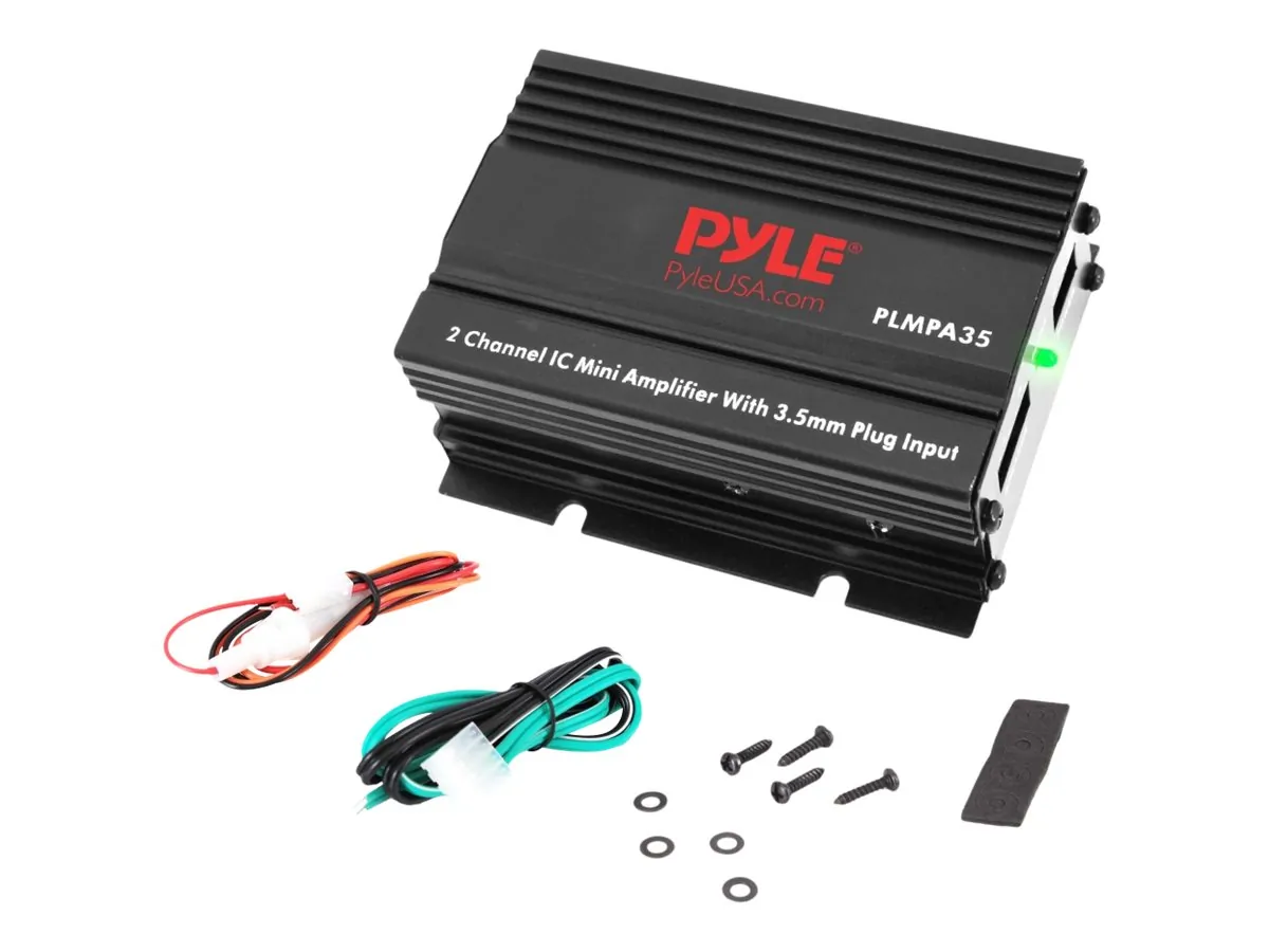 The Pyle 2-Channel Mini Amplifier is a compact and powerful audio solution designed for both home and professional use. With a robust 300W output, it can easily drive speakers for clear, high-quality sound reproduction. Its sleek design makes it suitable for any setup, and the 3.5mm input allows for easy connection to various audio devices.