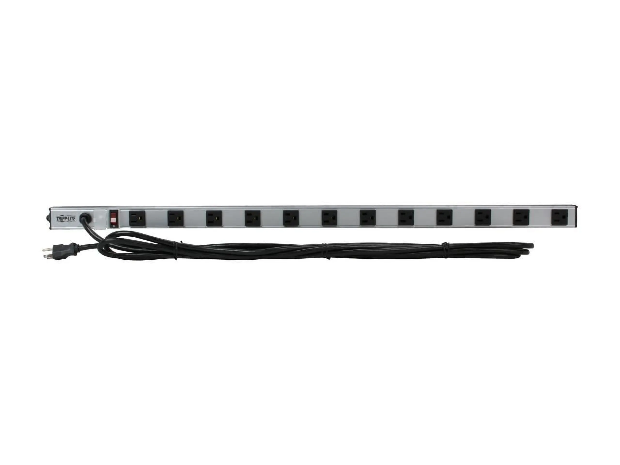 - Sturdy all-metal 36 inch corded strip format with 2.638 inch center-to-center outlet spacing - Included mounting hardware supports vertical or horizontal mounting in rack enclosures, raceways and more - Includes 12 NEMA 5-15R output receptacles - Ideal for horizontal or vertical raceway style power distribution in office, workbench, industrial, networking and telecom applications - Lighted power switch with locking transparent cover prevents accidental shutoff - 15 amp electrical capacity with circuit breaker - Lifetime product warranty - 120V AC, 50/60Hz electrical compatibility - Lifetime warranty