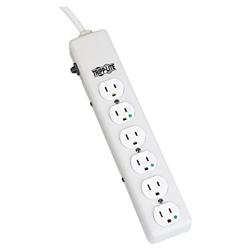 Tripp Lite Safe-IT Power Strip Hospital Medical Antimicrobial 120V 5-15R-HG 6 Outlet 1.5' Cord Metal - Power distribution strip - 15 A - AC 120 V - input: NEMA 5-15 - output connectors: 6 (NEMA 5-15) - 18.1 in - white