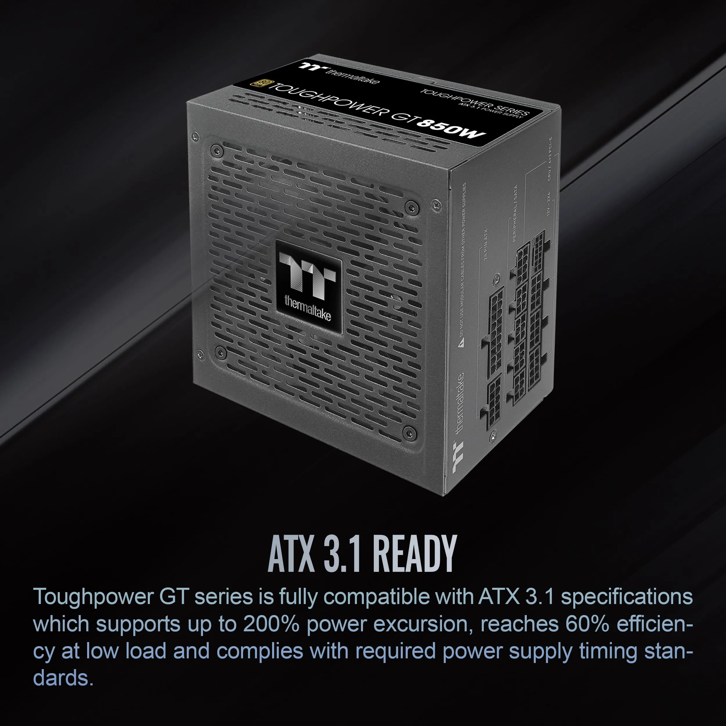 The Toughpower GT 850W Gold Power Supply Unit is designed to meet the power demands of modern systems, effortlessly supporting the latest ATX 3.1 standards. With an 80 PLUS Gold efficiency rating, this power supply not only saves energy but also enhances system performance.