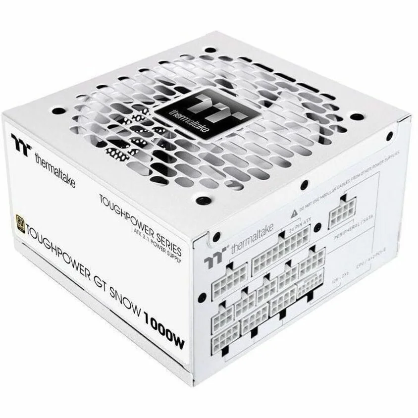The Toughpower GT 1000W Snow Power Supply is engineered to provide exceptional performance in a compact design. With 80 Plus Gold efficiency and compliance with the ATX 3.1 specification, it ensures efficient power delivery for high-performance systems. The unit features a Native PCIe 5.1 12V-2x6 connector, perfectly suited for the latest GPUs, making it an ideal choice for gamers and PC builders alike.