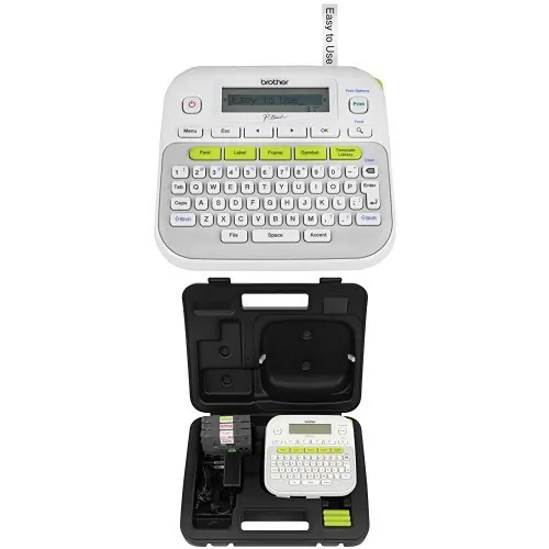 For those in search of an easy-to-use home or office label printer, the P-touch PTD210 should be on your wish list. The Brother P-touch PT-D210 makes it easy to create great-looking labels for your home and home office. With its convenient one-touch keys, you can quickly access fonts, symbols, frames, and templates. Plus, users have the flexibility to preview the text for each label that is highlighted on the display to reduce printing and type errors. This helps to save time, money, and supplies. This easy-to-use label maker allows you to design professional-looking labels. The PT-D210 features 14 fonts, 10 unique styles, 97 frames, and more than 600 symbols. The use of one-touch buttons allows users to access fonts, styles, and frames to create elegant labels for personal or business use. There are also 27 quick and easy templates. Simply select the template, type in the content, and print. These labels are great for scrapbook pages, gift tags, and more. The PT-D210 is lightweight and portable. It is powered by 6 AAA batteries (sold separately) or an optional AC power adapter (AD-24). The PT-D210 also has an optional, sturdy protective case (CC-D210) that is great for storage and travel. You can store the printer as well as extra supplies with ease. Whether you choose to create labels for general storage, file folders, food storage, or crafts, using the PT-D210 is easy, portable, and efficient. For use with Brother Genuine P-touch TZe tapes: TZe-S631, TZe-S621, TZe-S231 , TZe-S221, TZe-S211, TZe-S135, TZe-S131, TZe-S121, TZe-N201, TZe-MQP35, TZeMQG35, TZe-MQF31, TZe-MQE31, TZe-MQ934, TZe-MQ835, TZe-MQ531, TZe-FX631, TZe-FX231, TZe-FA3, TZe-AF231, TZe-631, TZe-421, TZe-335, TZe-334, TZe-325, TZe-315, TZe-232, TZe-2312PK, TZe-231, TZe-221, TZe-211, TZe-135, TZe-1312PK, TZe-131, TZe-121, TZe-111.