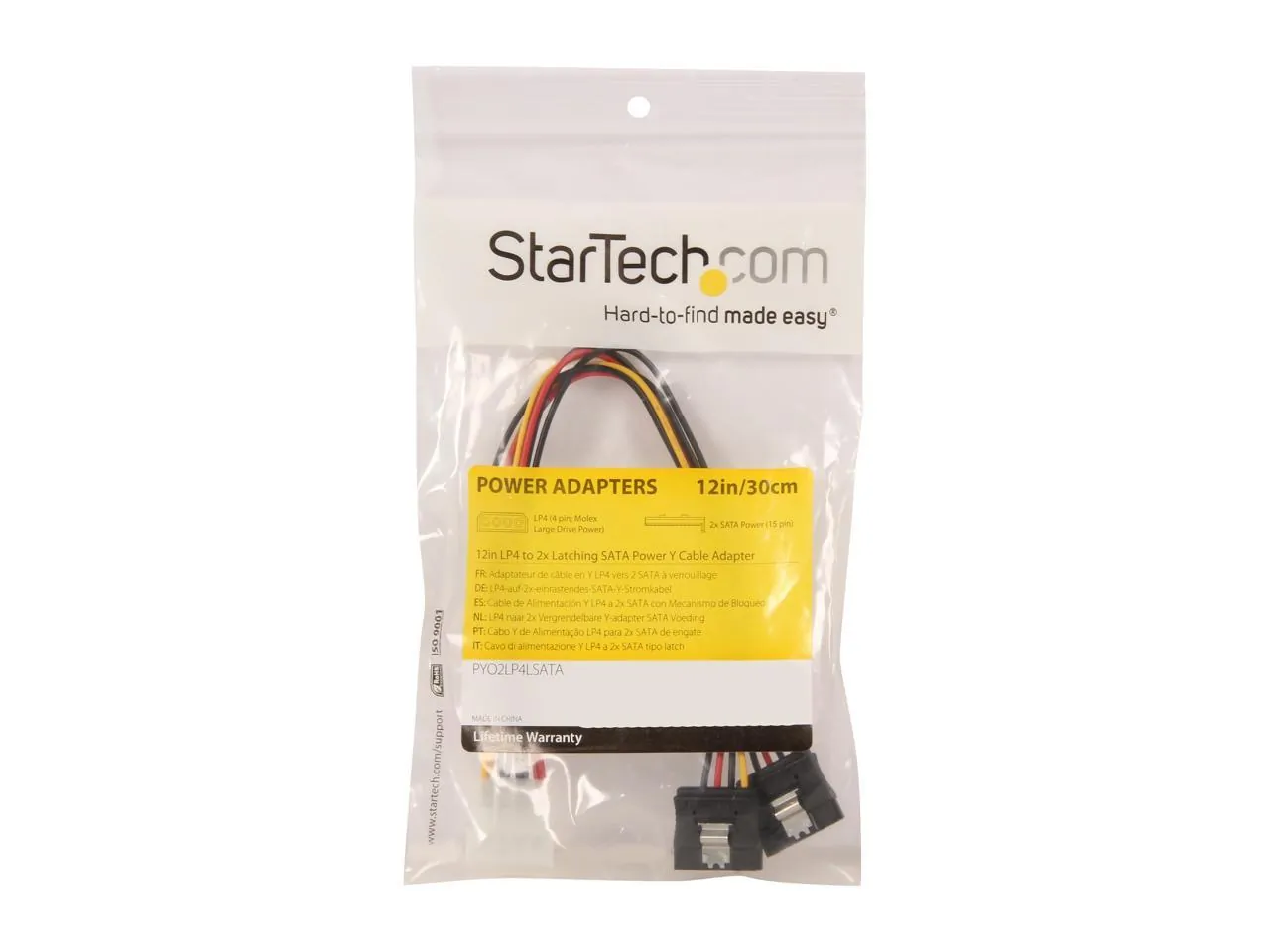 StarTech.com PYO2LP4LSATA LP4 to 2x Latching SATA Power Y Cable Splitter Adapter - 4 Pin Molex to Dual SATA