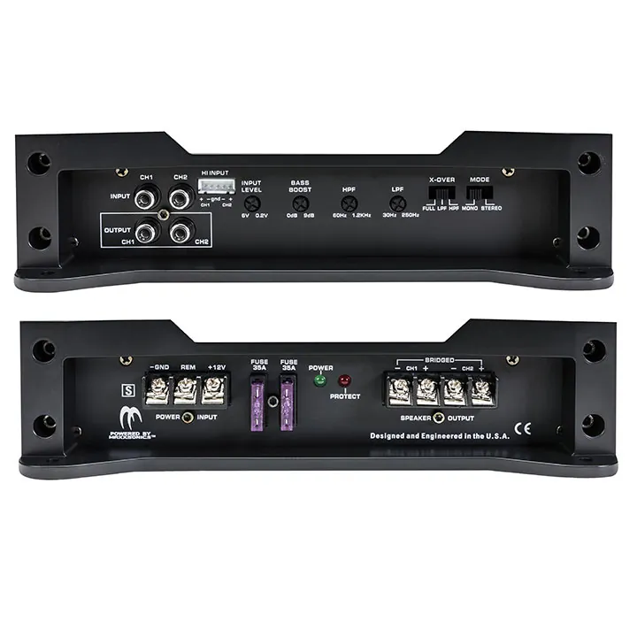 2,000 watts mono bridged @ 4 ohms500 watts x 2 @ 4 ohms1,000 watts x 2 @ 2 ohms0 to 9 dB bass boostRed heat sink elementsSPEED-FET output devices to maximize power efficiency while improving sound quality and minimizing distortionHigh-level inputs to integrate with OEM systemsFully adjustable electronic crossoversLow-voltage RCA inputs produce the highest sound quality without interference and minimal distortion in the signal pathAbility to daisy-chain multiple amps to eliminate additional signal cables from the source unitLED system protection circuitry diagnosticsIncludes owner's manual