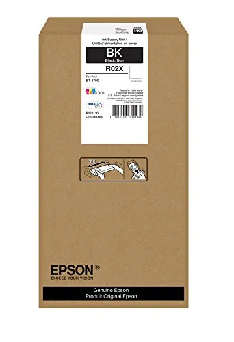 The EPSON R02X Extra High Capacity Black Ink Pack is designed specifically for the ET-8700 printers. This premium ink delivers sharp, vibrant black text and images, ensuring your prints maintain their quality over time.