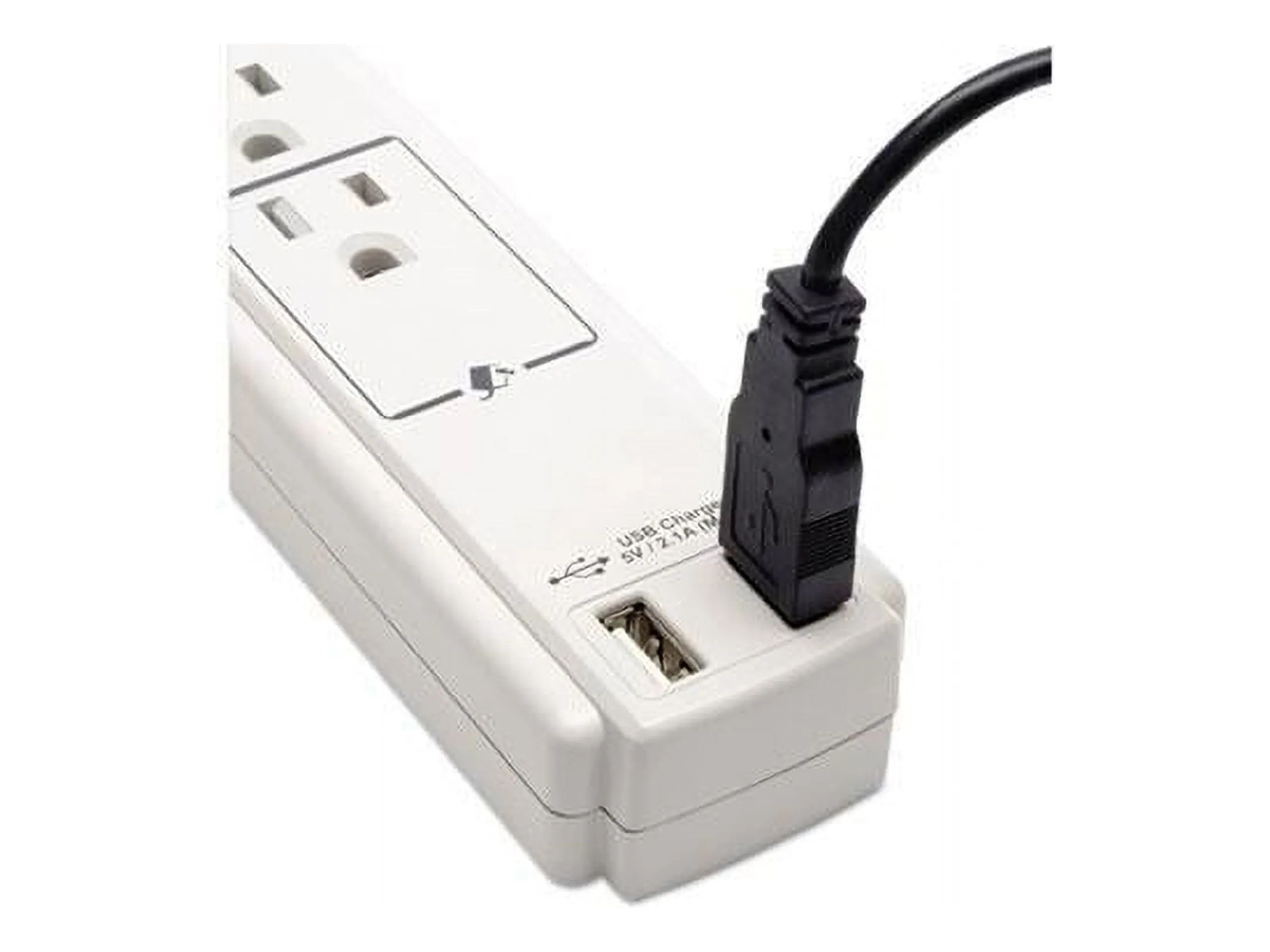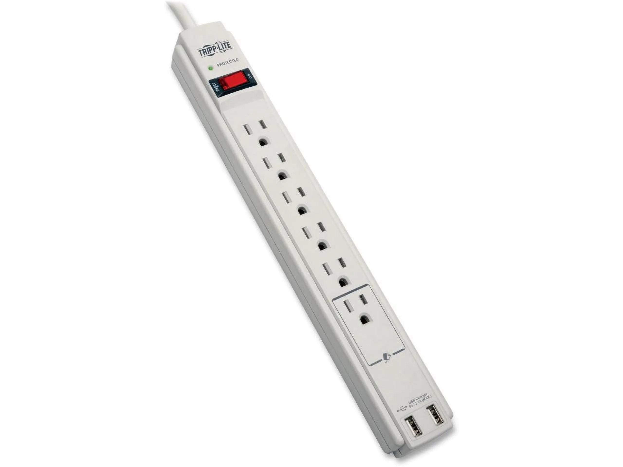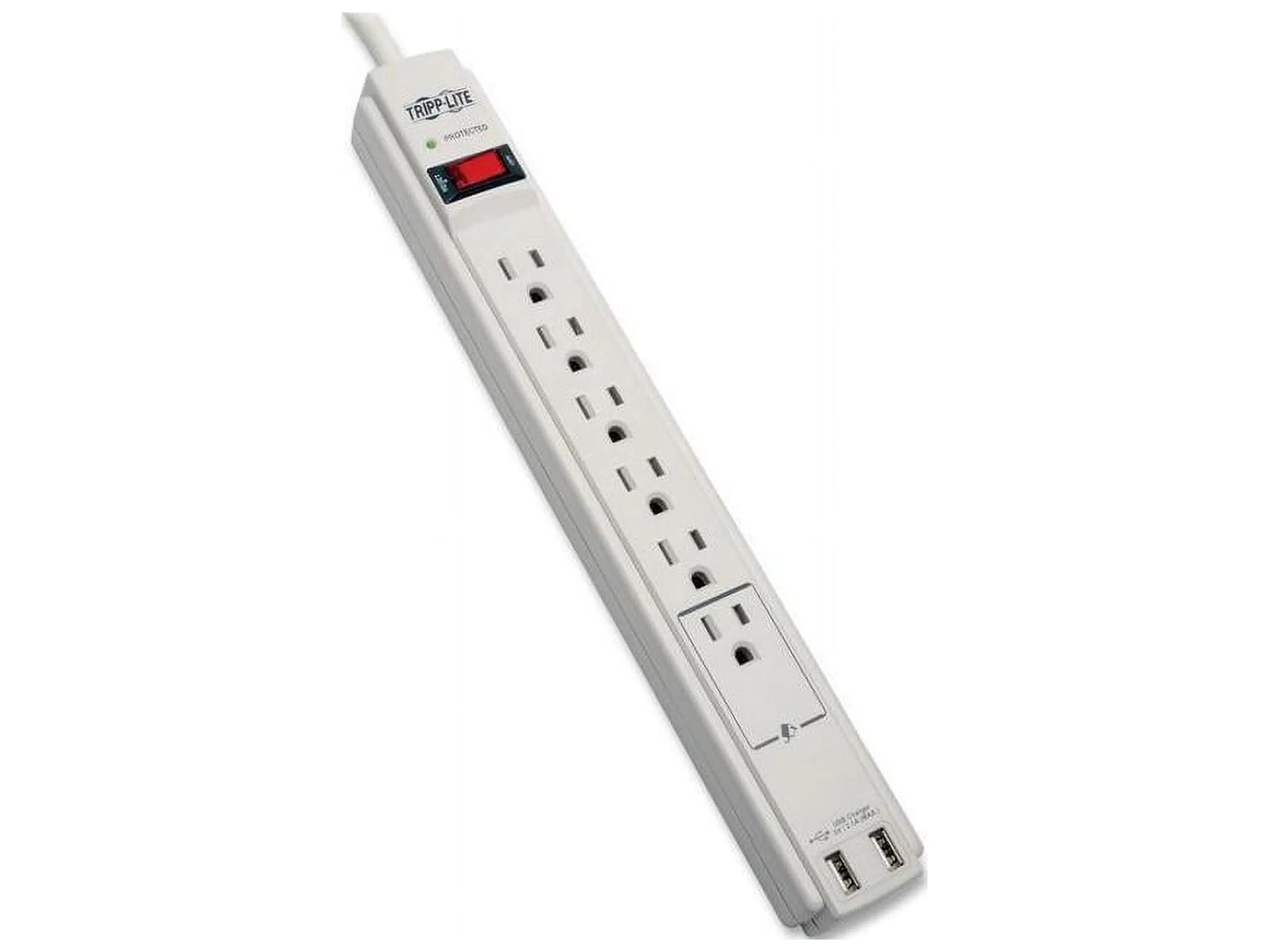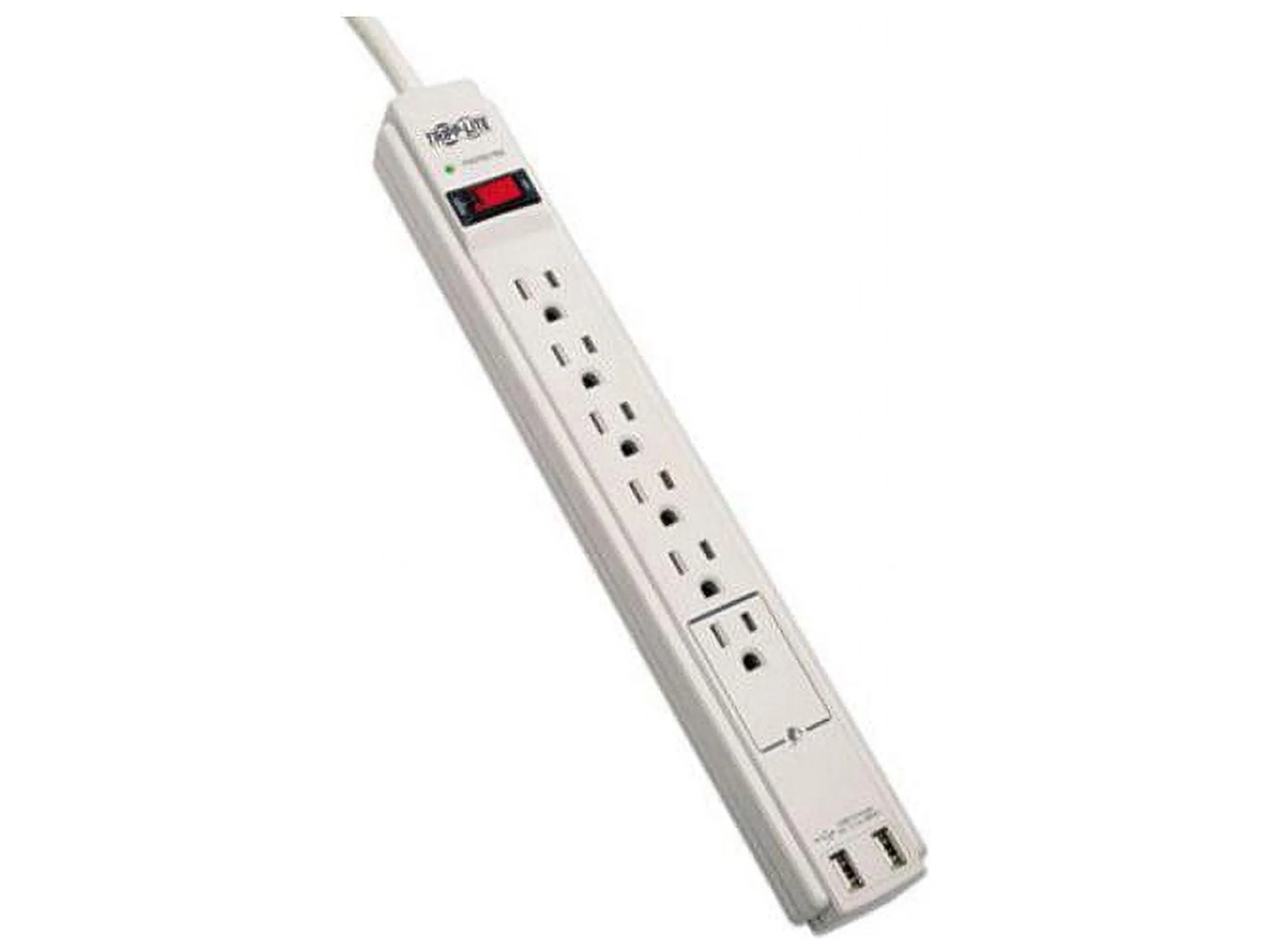 The TLP606USB offers economical AC surge suppression for protection of workstations, desktop PCs, telecom systems and other sensitive electronics. Built-in AC surge suppression shields connected equipment from damage and performance problems due to transient surges. USB charging ports offer fast charging for smartphones, tablets, MP3 players and other portable devices. TLP606USB offers six total outlets, a six-foot (1.8-meter) cord, two USB charging ports and a diagnostic LED to warn of suppressor damage. AC suppression rated at 990 joules shields equipment from surges and line noise. Attractive cool gray suppressor housing with keyhole mounting tabs offer convenient protection of desktop computer equipment and accessories. $20,000 Ultimate Lifetime Insurance (U.S., Canada, and Puerto Rico only).