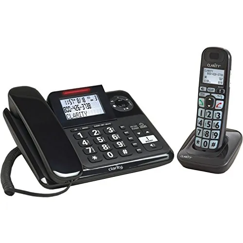 The E814CC 6.0 DECT Amplified Clarity Cordless Phone/Corded Phone and Digital Answering Machine Combo amplifies incoming sound up to 40 decibels and is hearing aid compatible, giving you a clear call every time. This 40DB Amplified Cordless Phone Combo comes with a corded base unit and one additional cordless handset. It has four tone settings to customize your listening experience. The amplified digital answering machine makes it easier to listen to important messages. The Clarity Cordless Phone and Corded Phone E814CC both feature a large high-contrast CID display that can also light up as a super bright visual ringer, which makes it easier to see who is calling you even in low light or dark conditions. It has an extra loud and clear speakerphone for hands-free conversations. The Clarity Cord / Cordless Phone with Digital Answering Machine system is expandable up to four cordless handsets on the same phone line (see model D703HS).